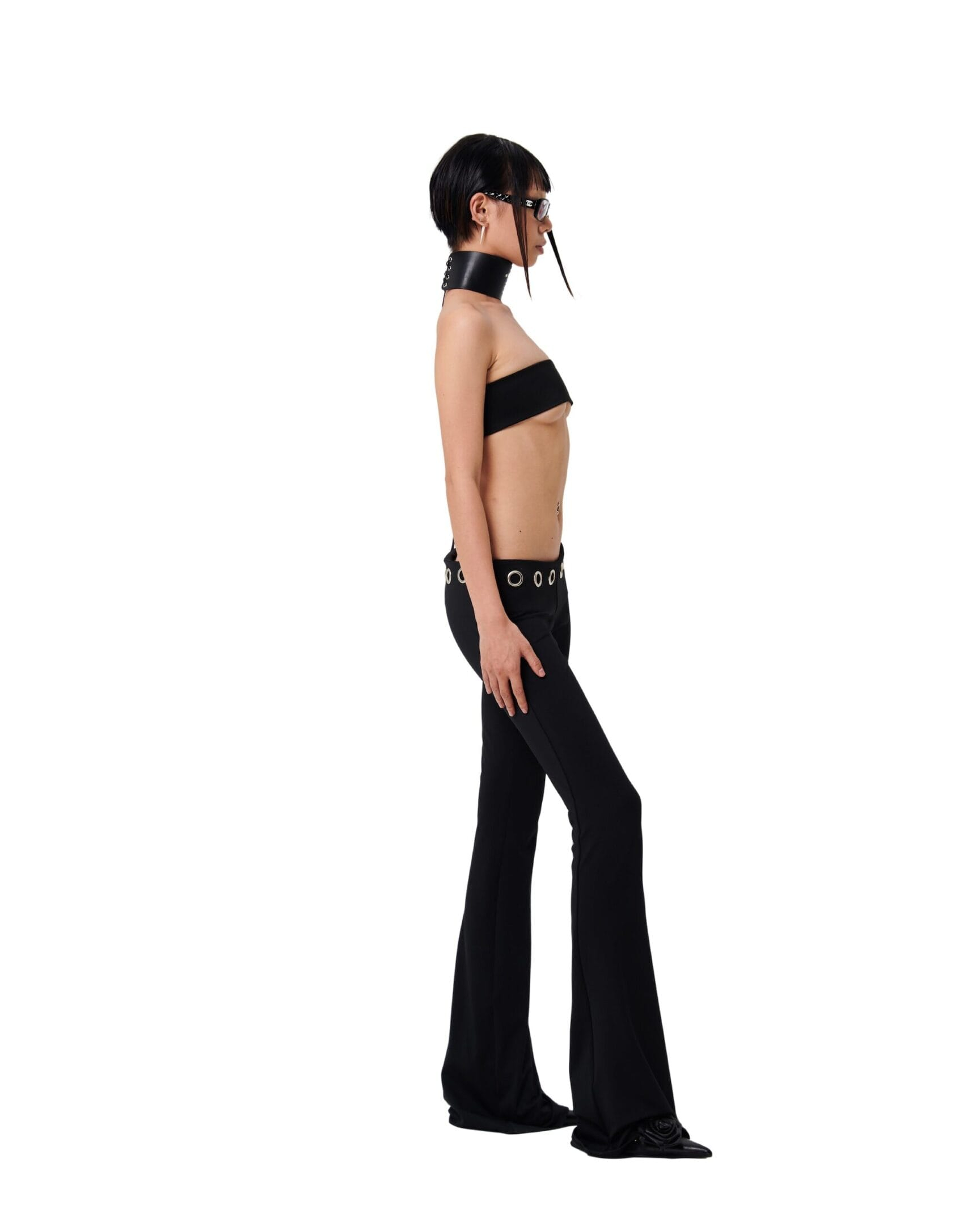 LOW WAIST ELASTIC FLARE PANTS WITH LARGE EYELET DETAILS
