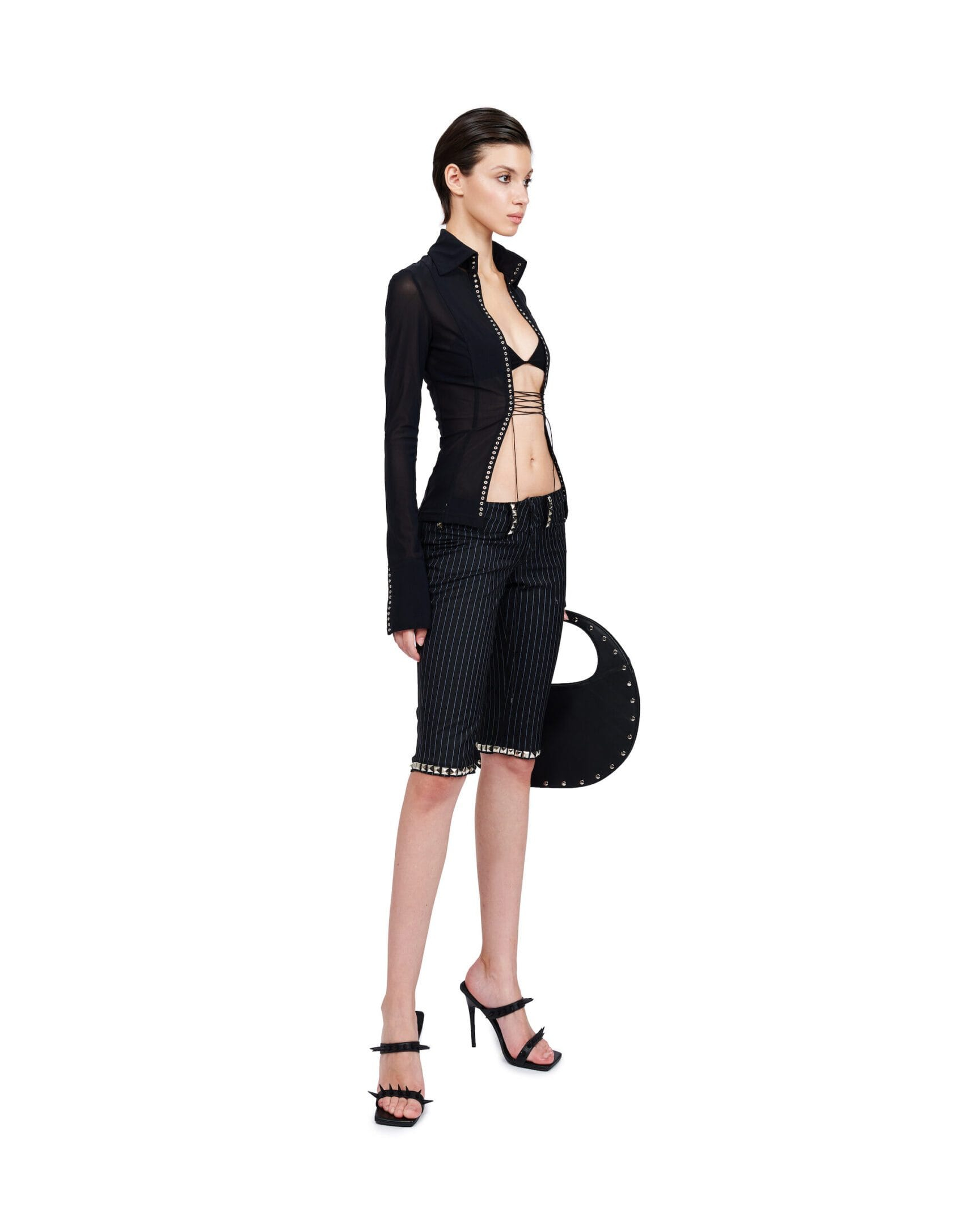 LOW WAIST STUDDED CAPRI PANTS