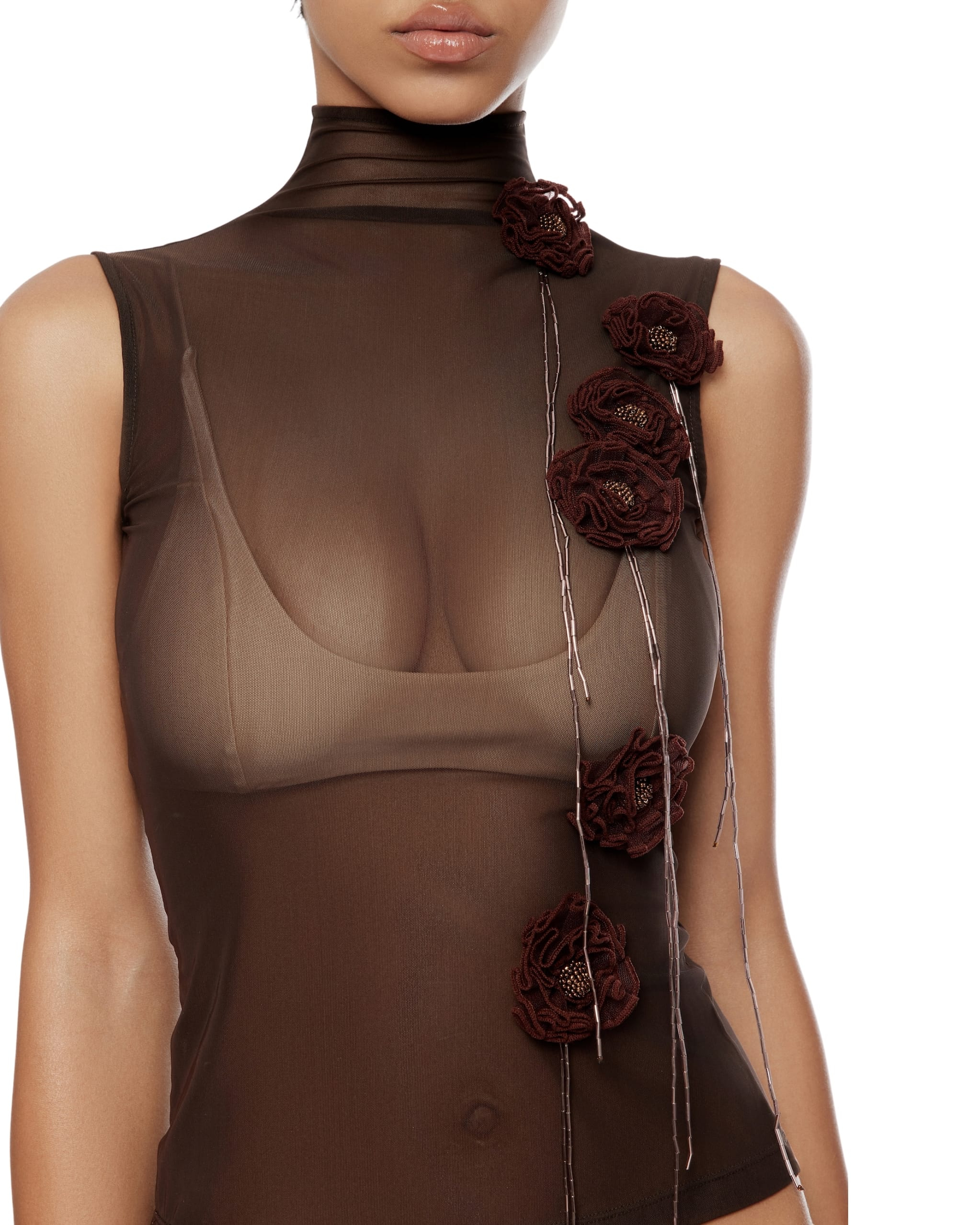 Semi-sheer stretch nylon mesh tank top