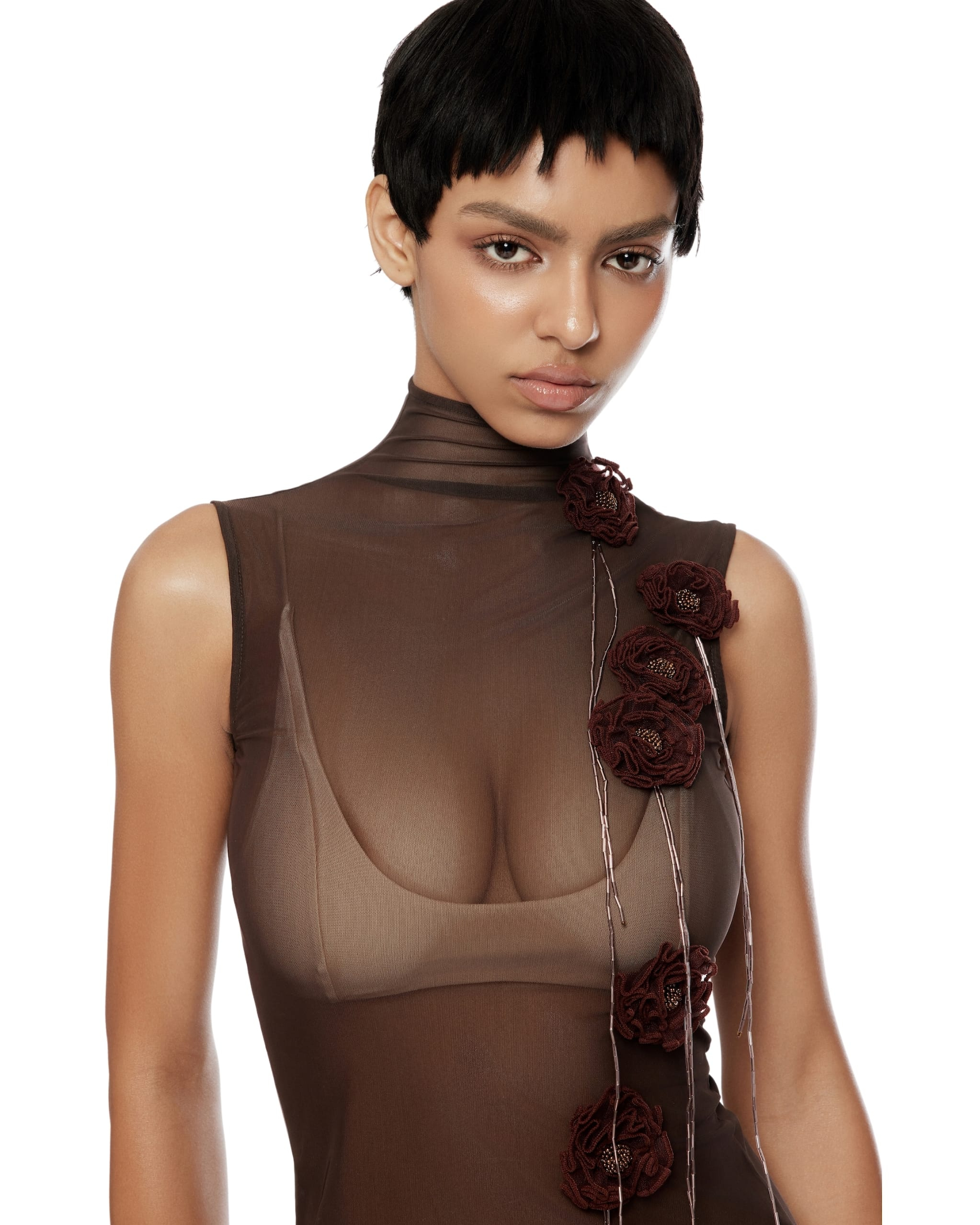 Cut out details at back Hook-eyes closure at back