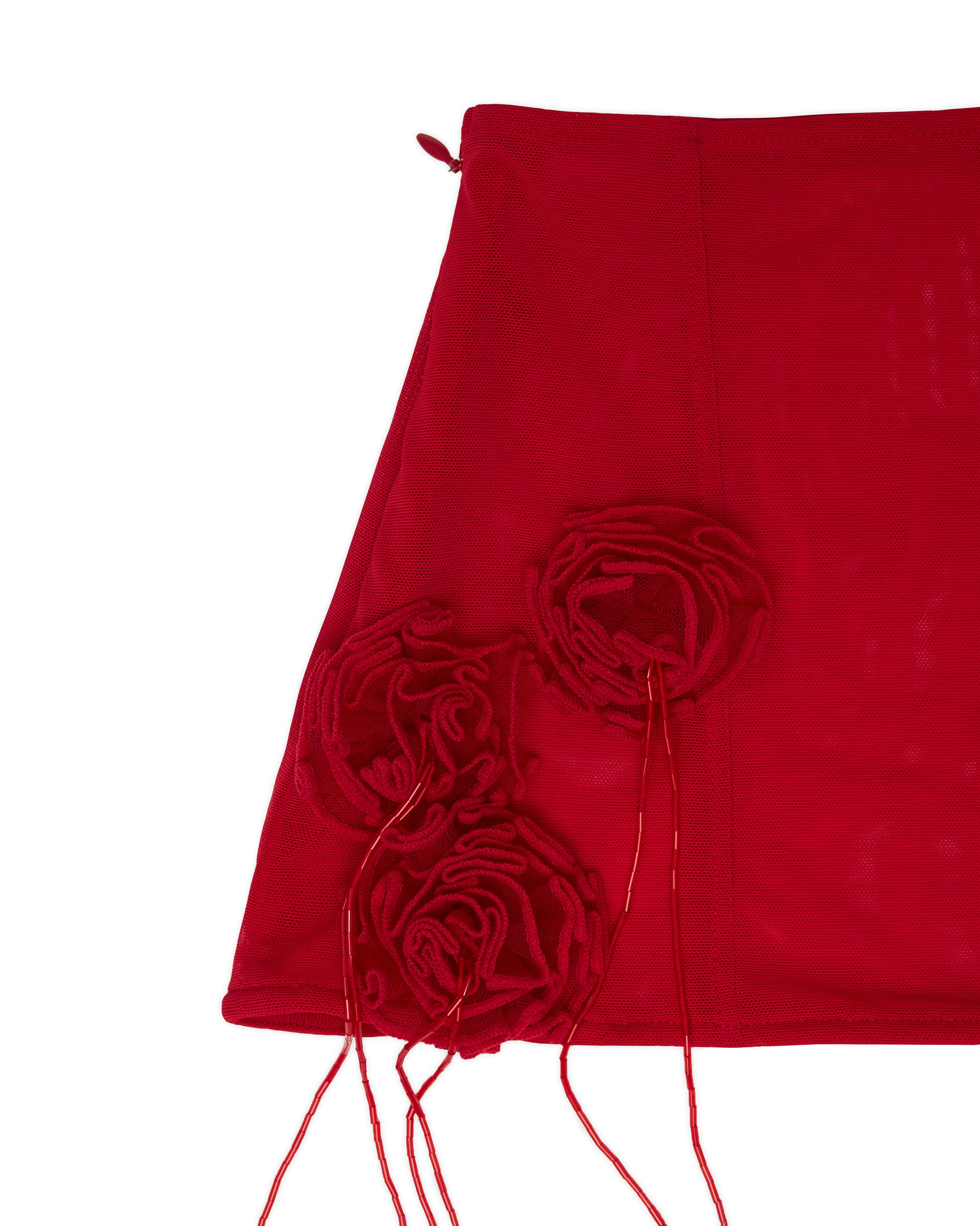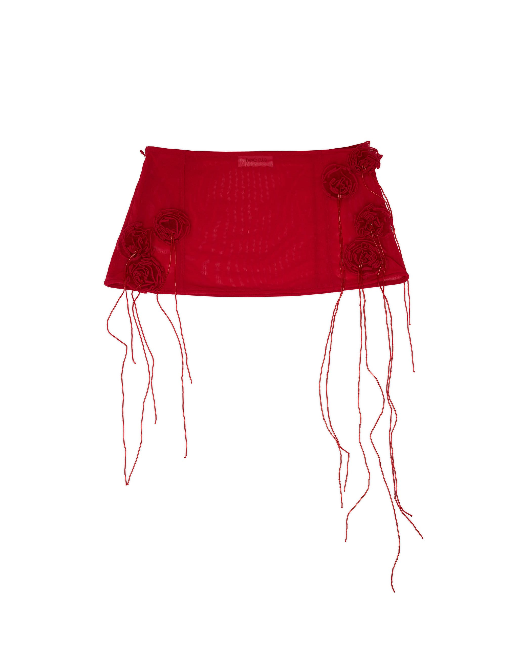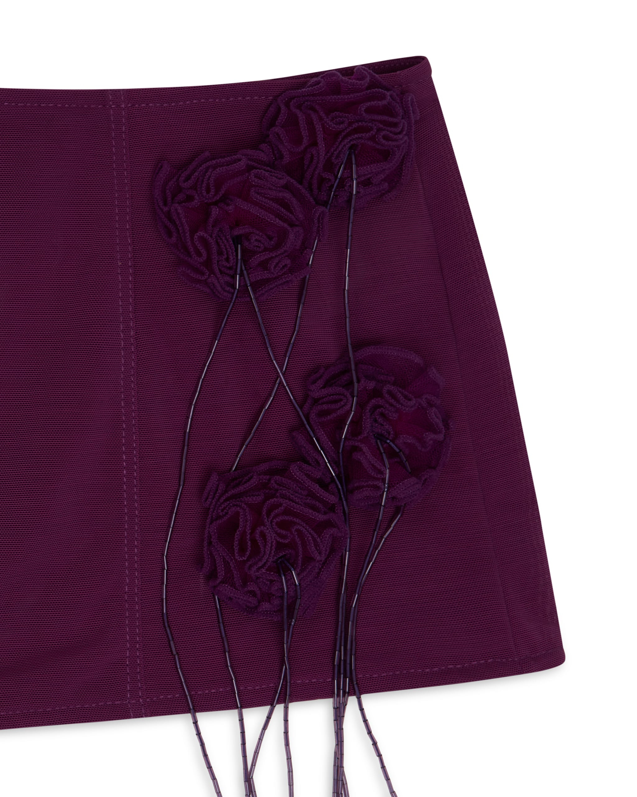 Semi-sheer stretch nylon mesh mini skirt with handmade rosette