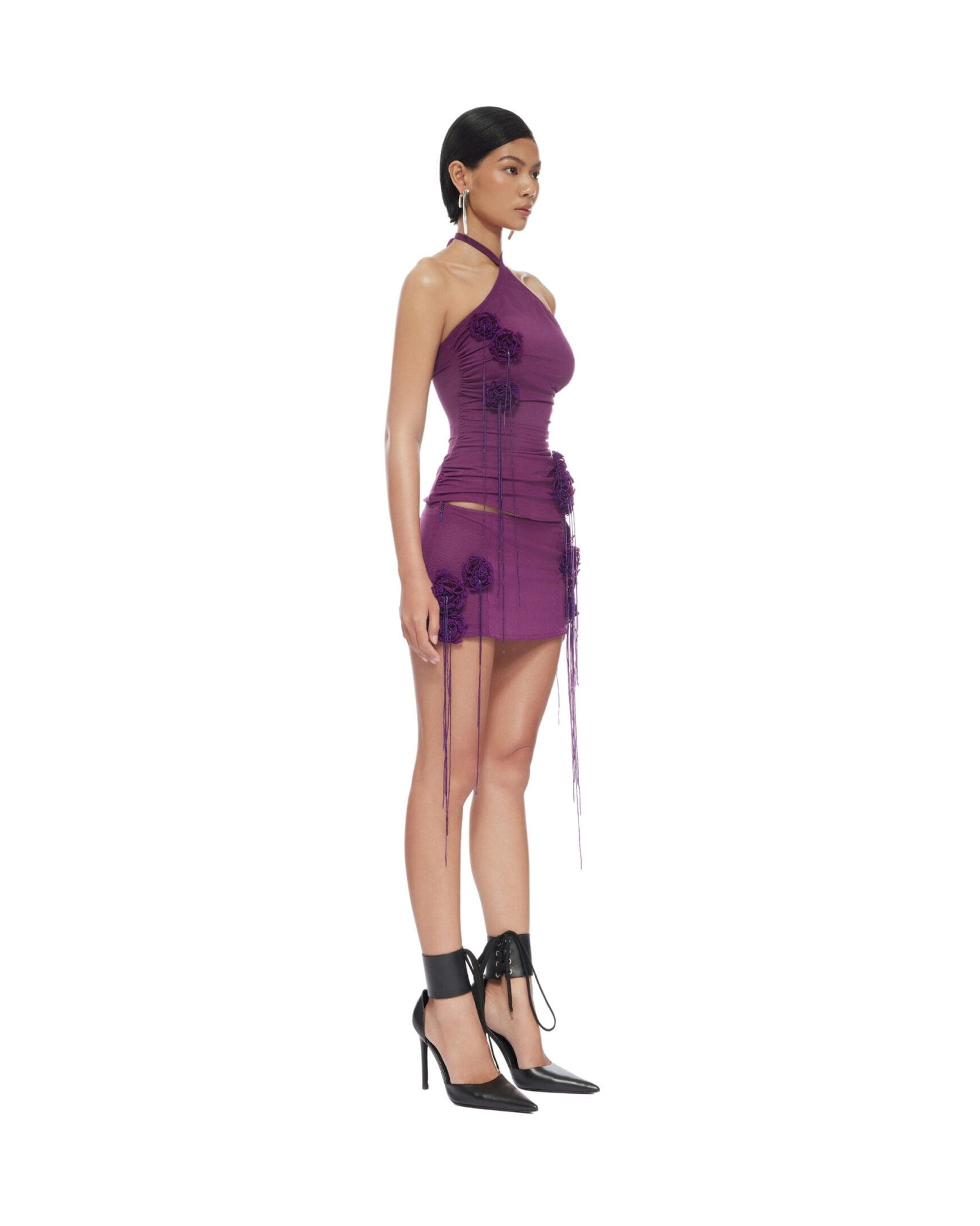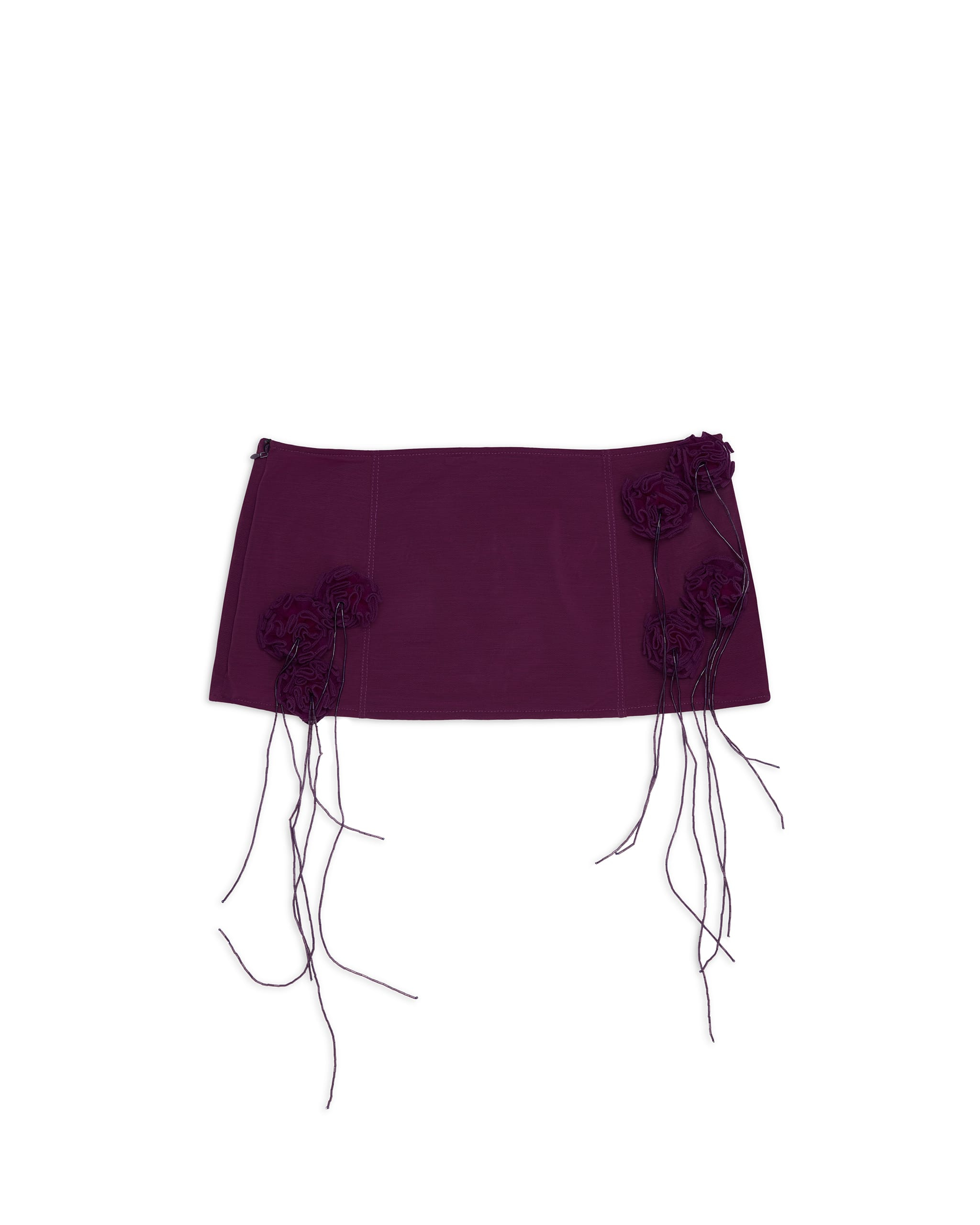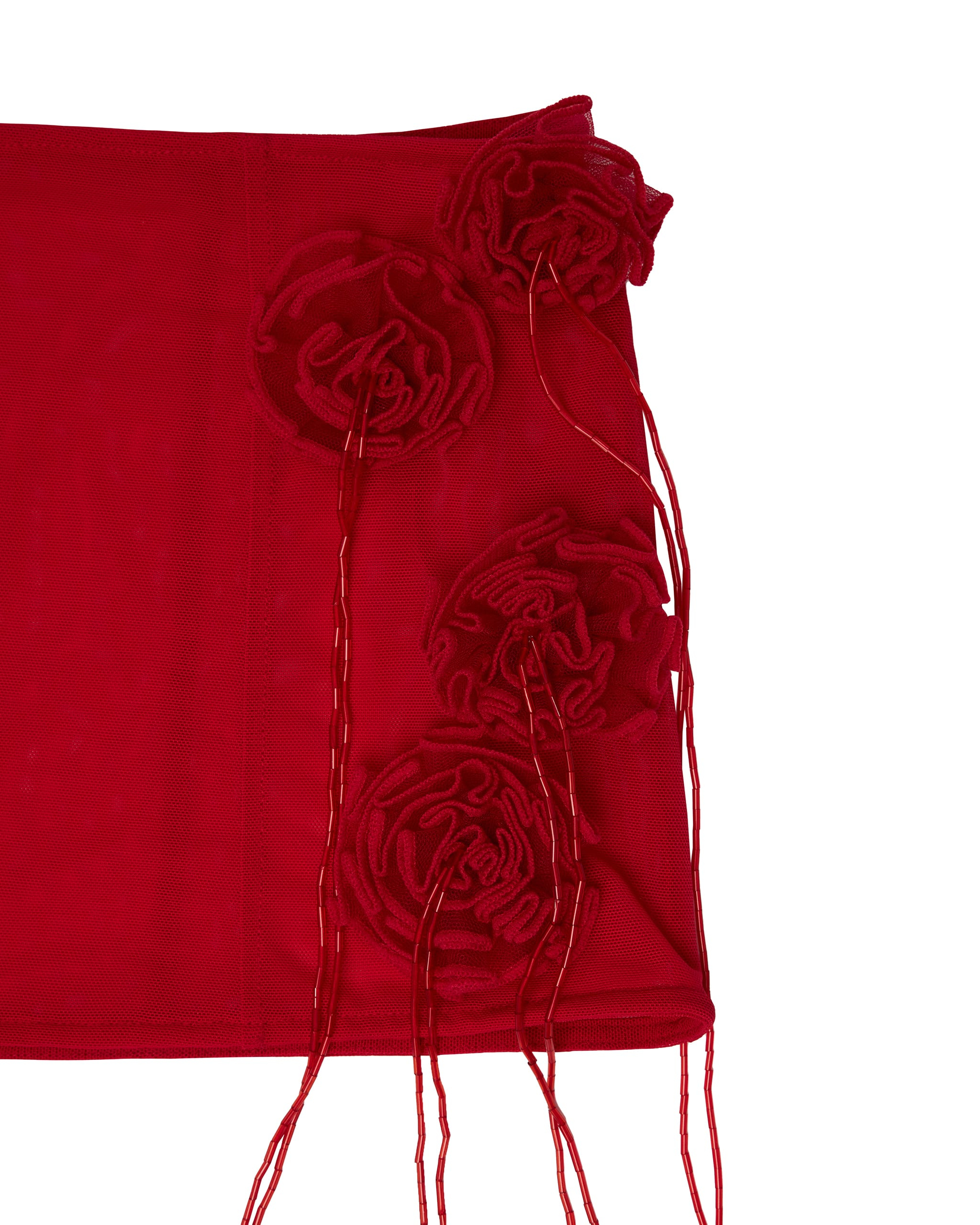 Semi-sheer stretch nylon mesh mini skirt with handmade rosette