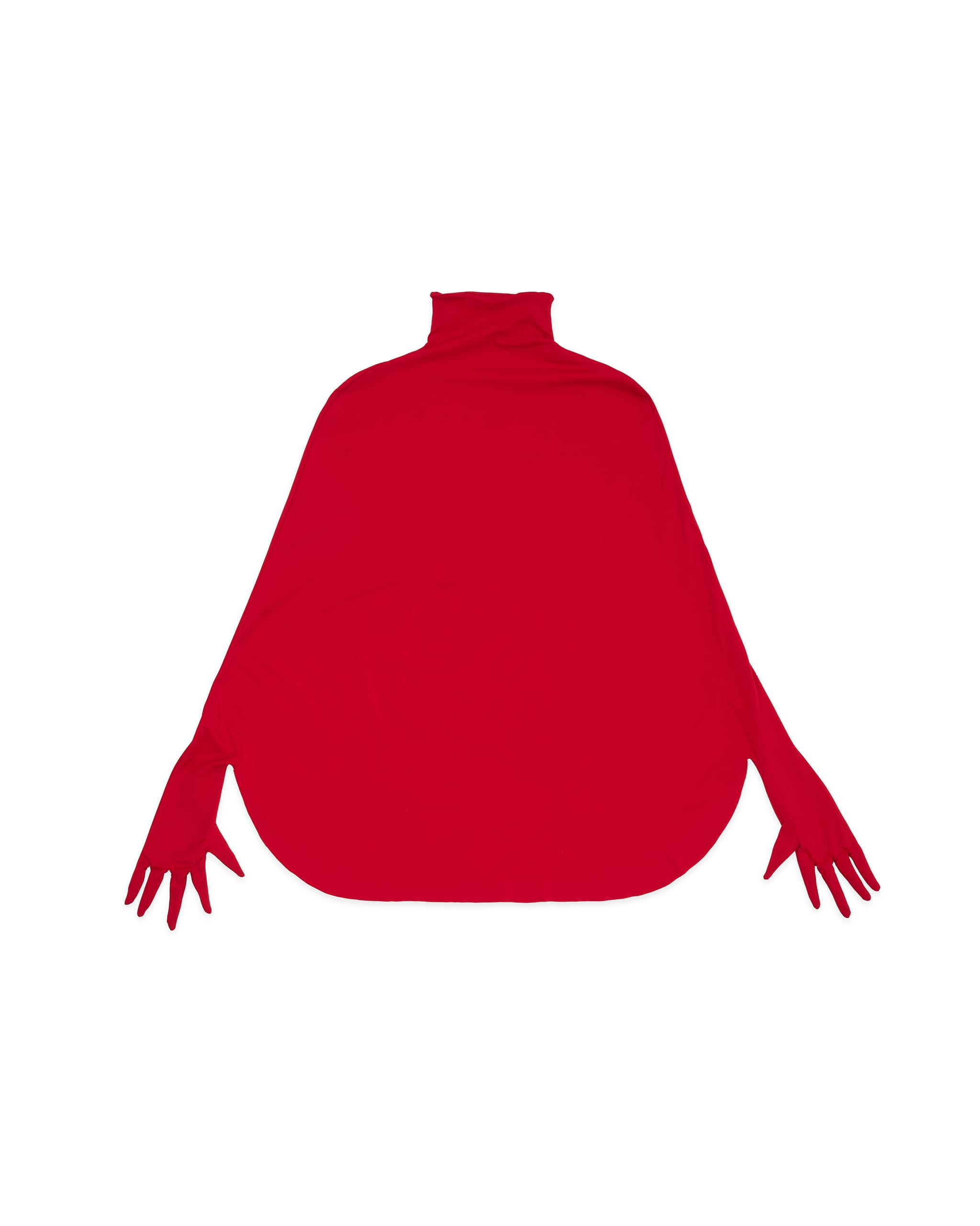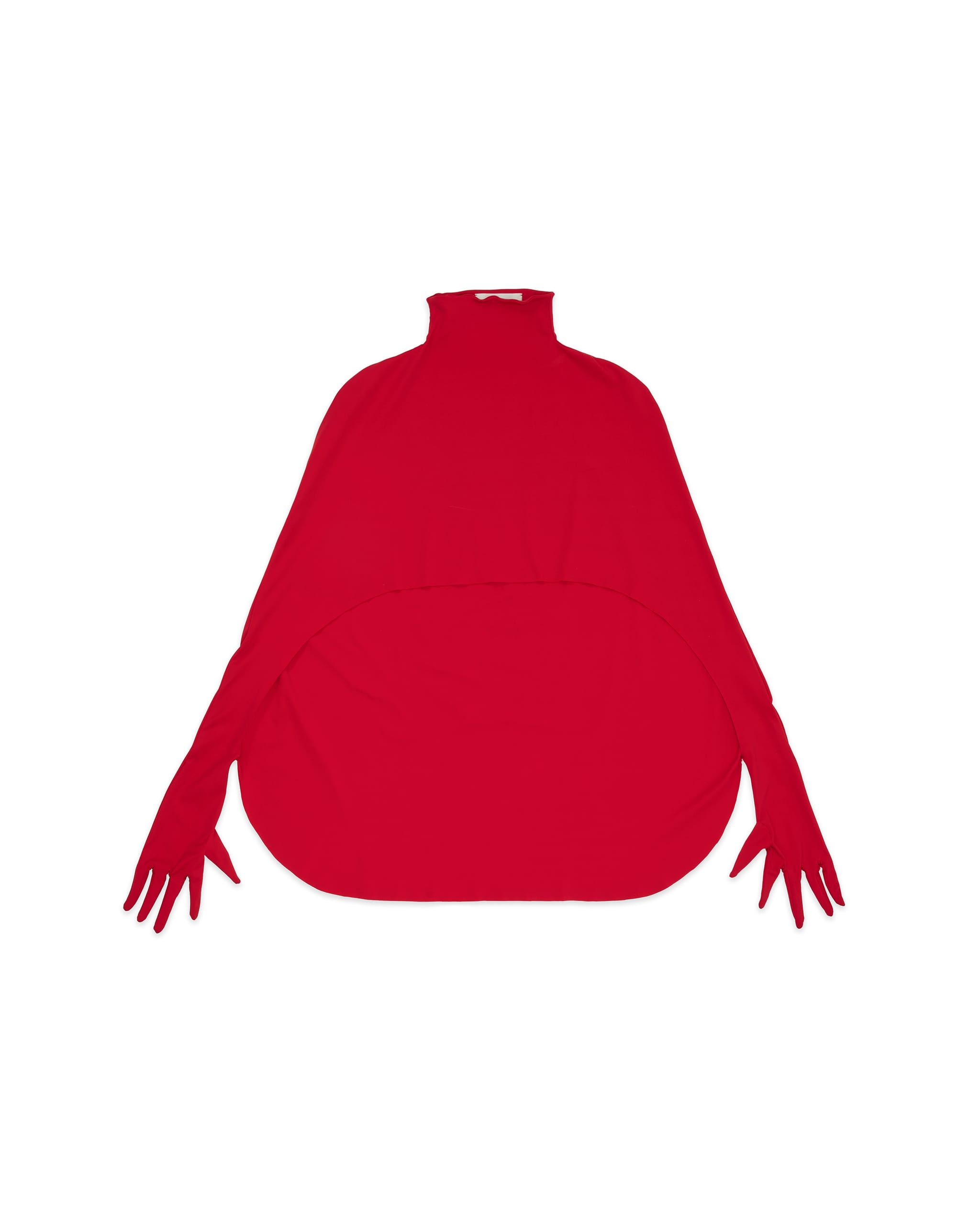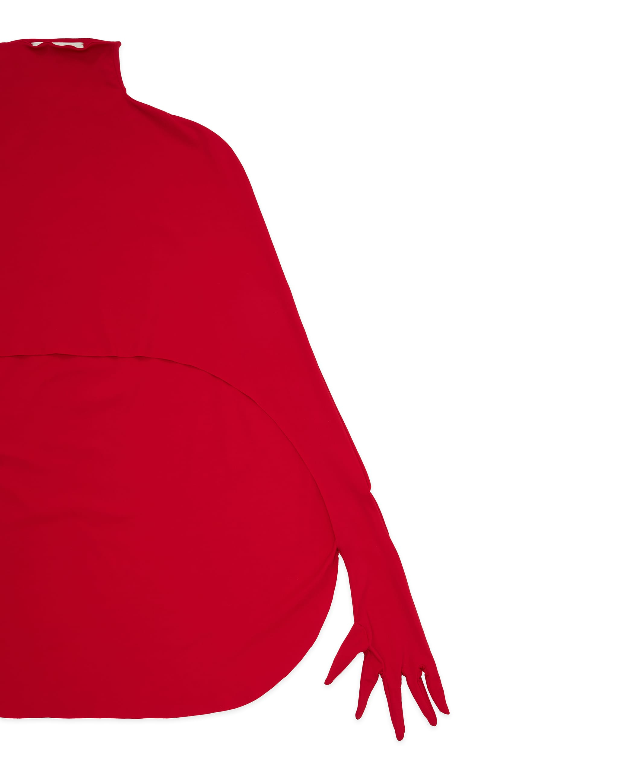 Stretchy bat wings gloves top Mock neck Raw edge hem Unlined