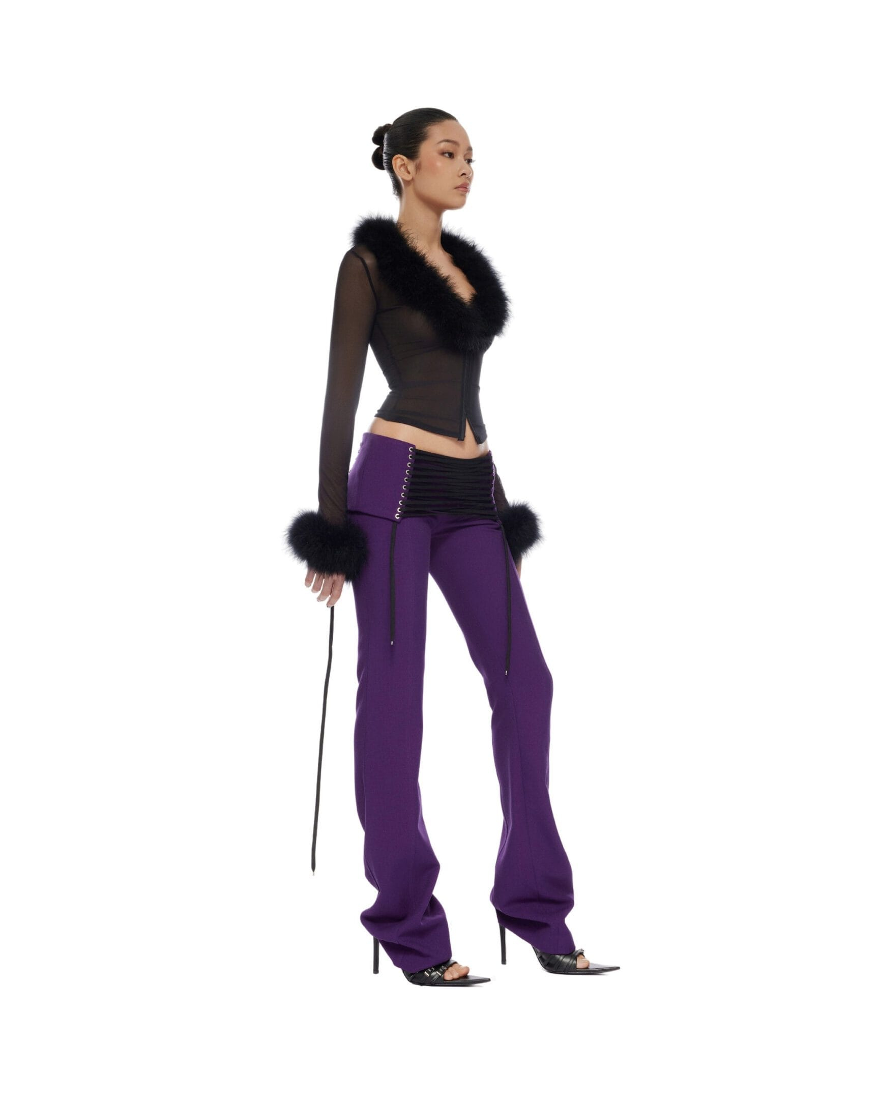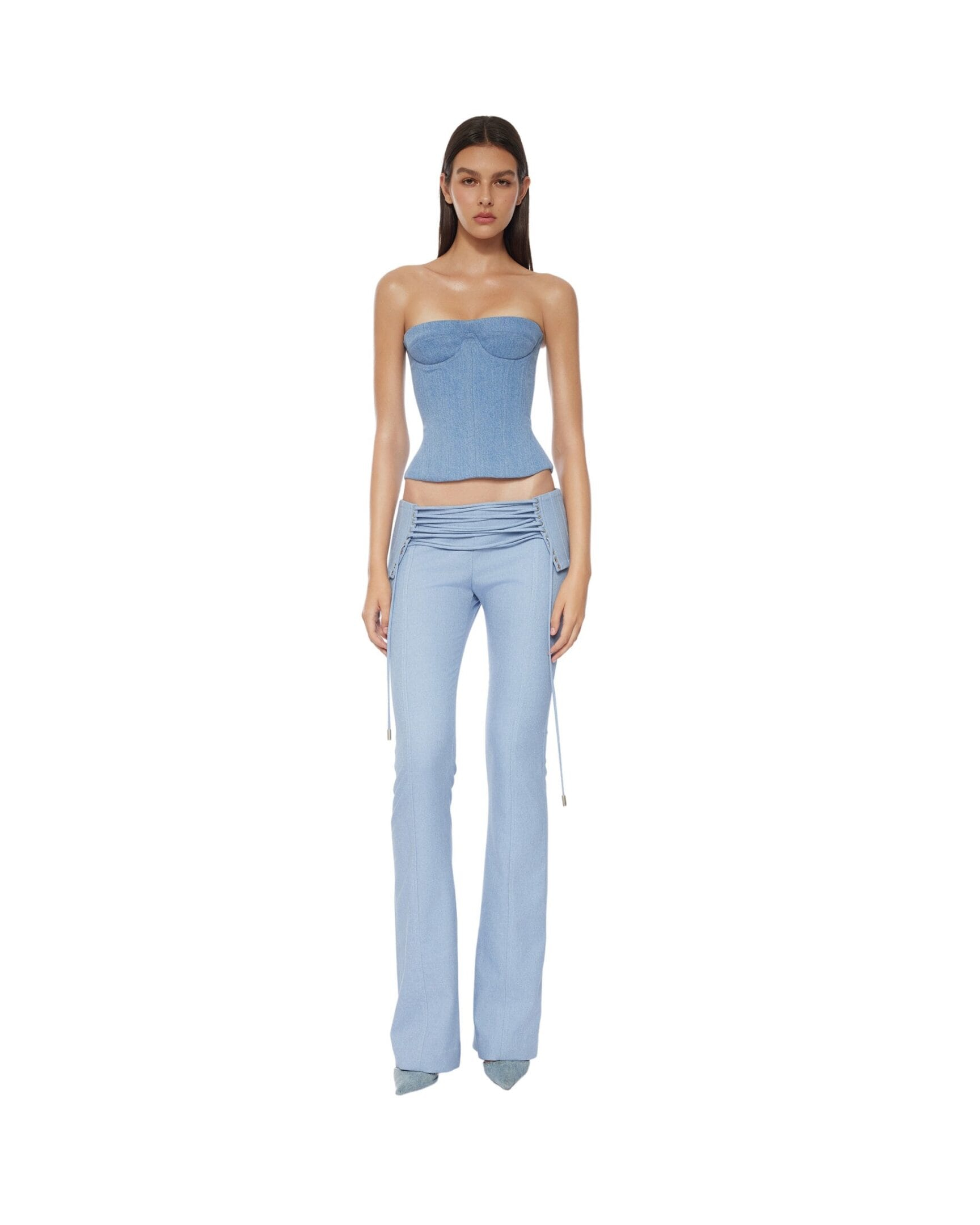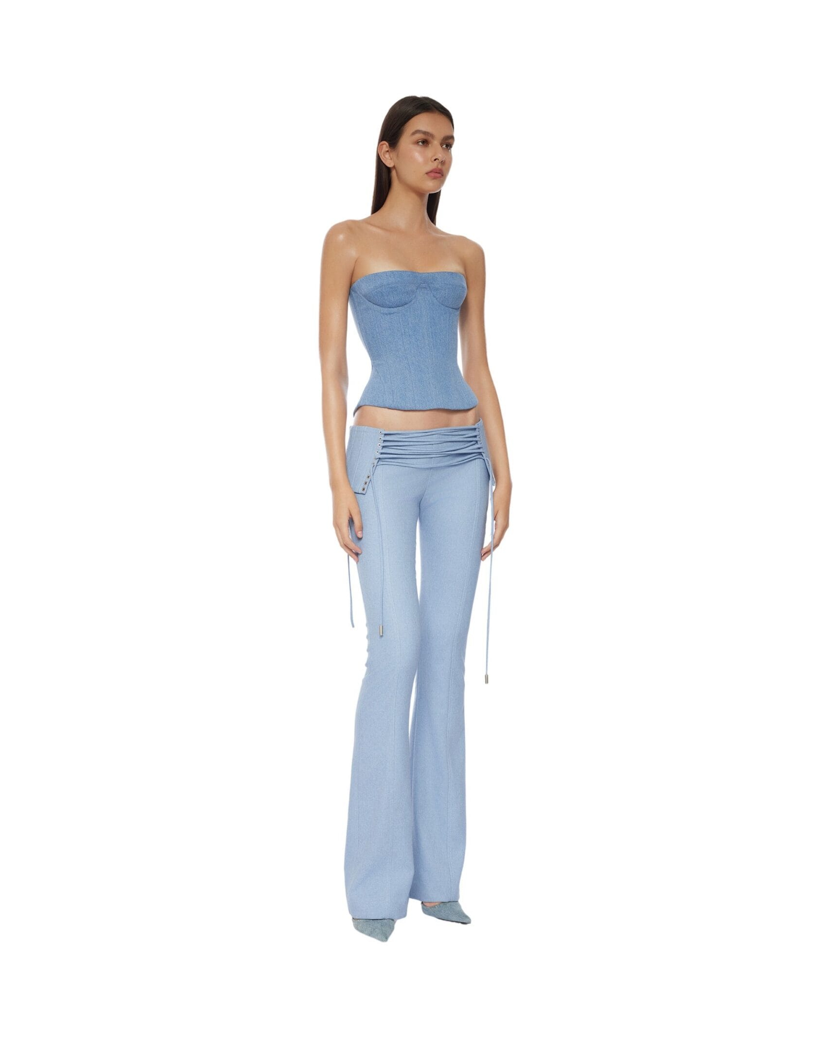Low-waist pants with self-tie lace