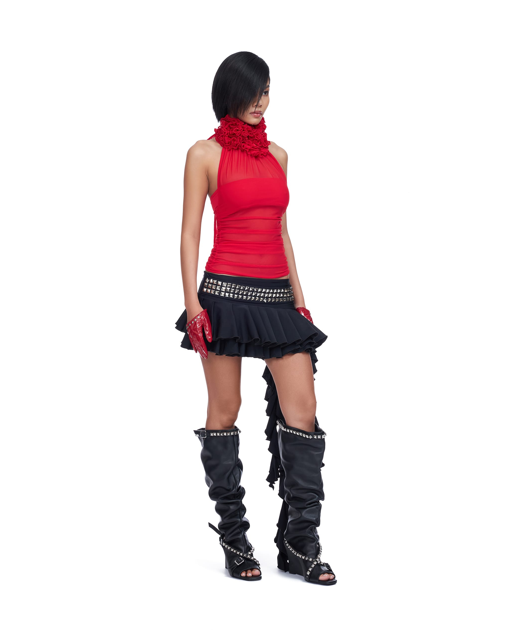 ELASTIC SKIRT WITH RUFFLE DETAILS