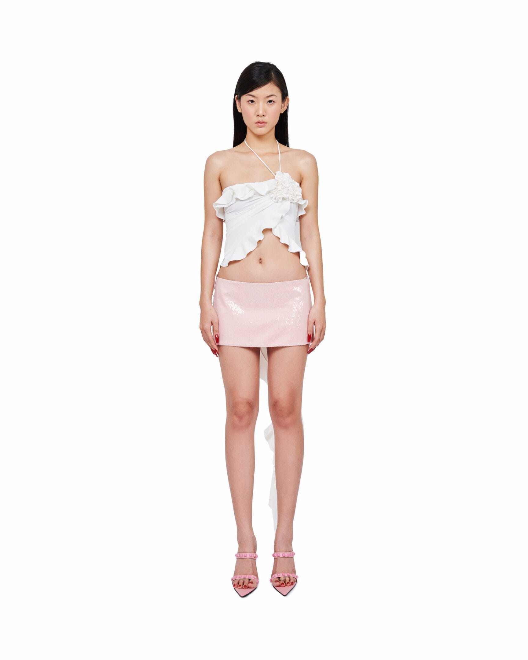 Low-rise Concealed zip closure at side seam. Full lined Sequinned detailing throughout, dart at back