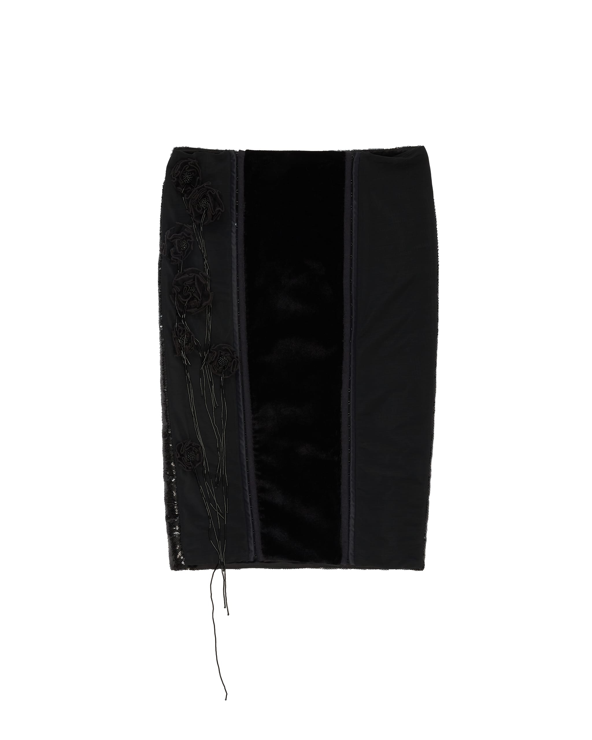 Paneled style sequins hand-embroidered flowers midi skirt