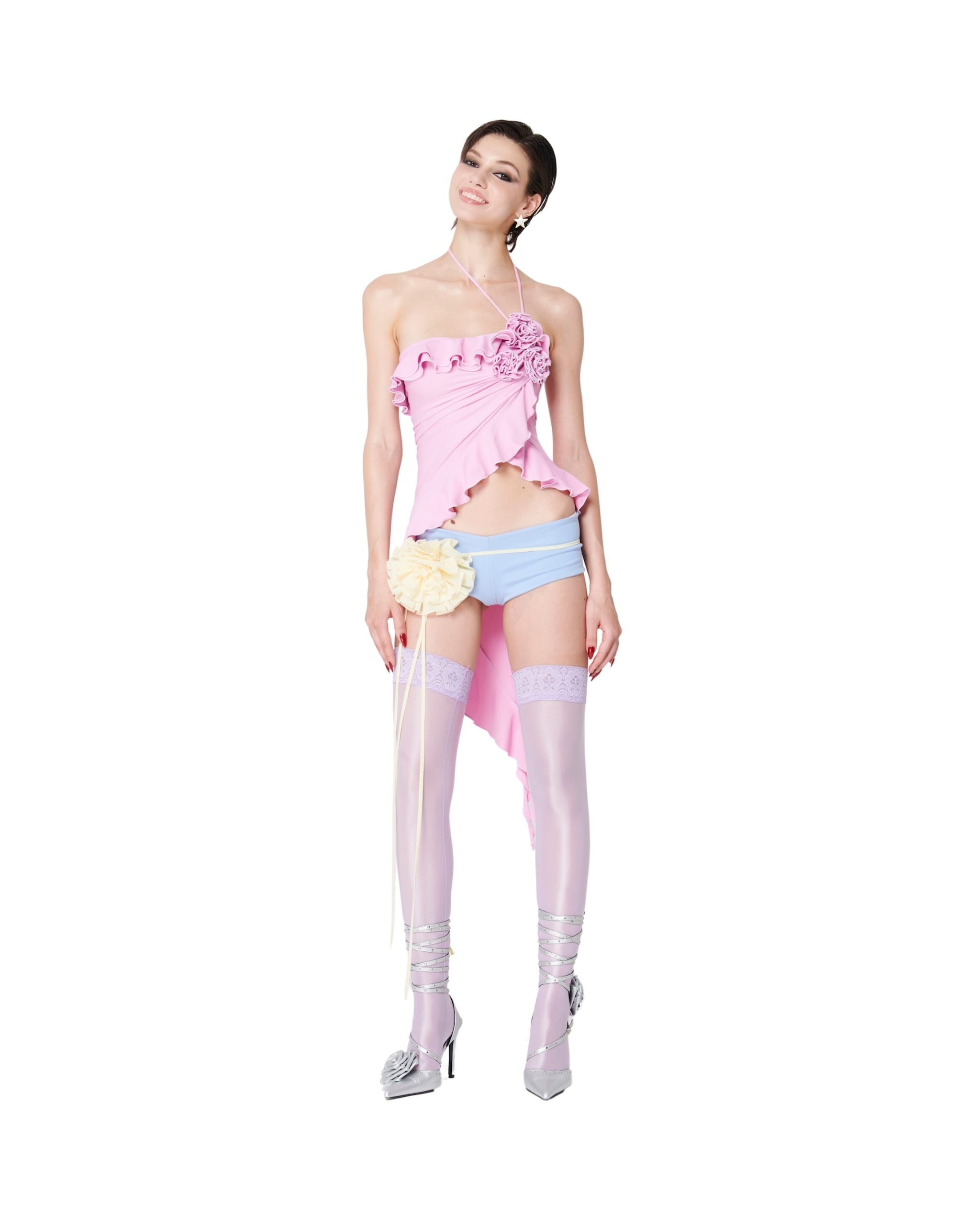 Two-string Ruffle Split Bandeau top Handmade rosette included