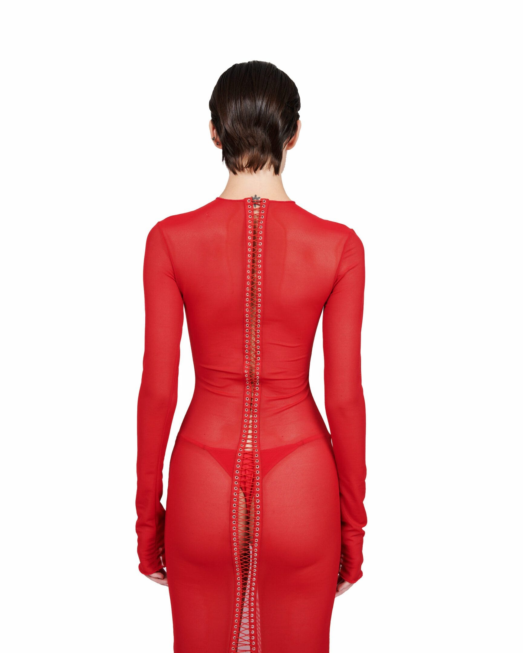 LACE UP BACK ANKLE-LENGTH DRESS
