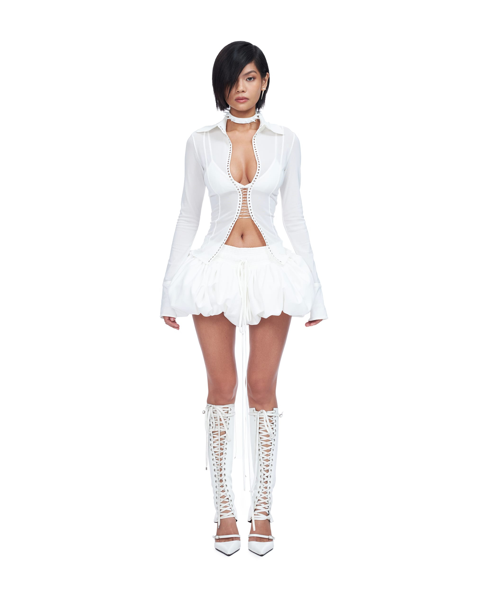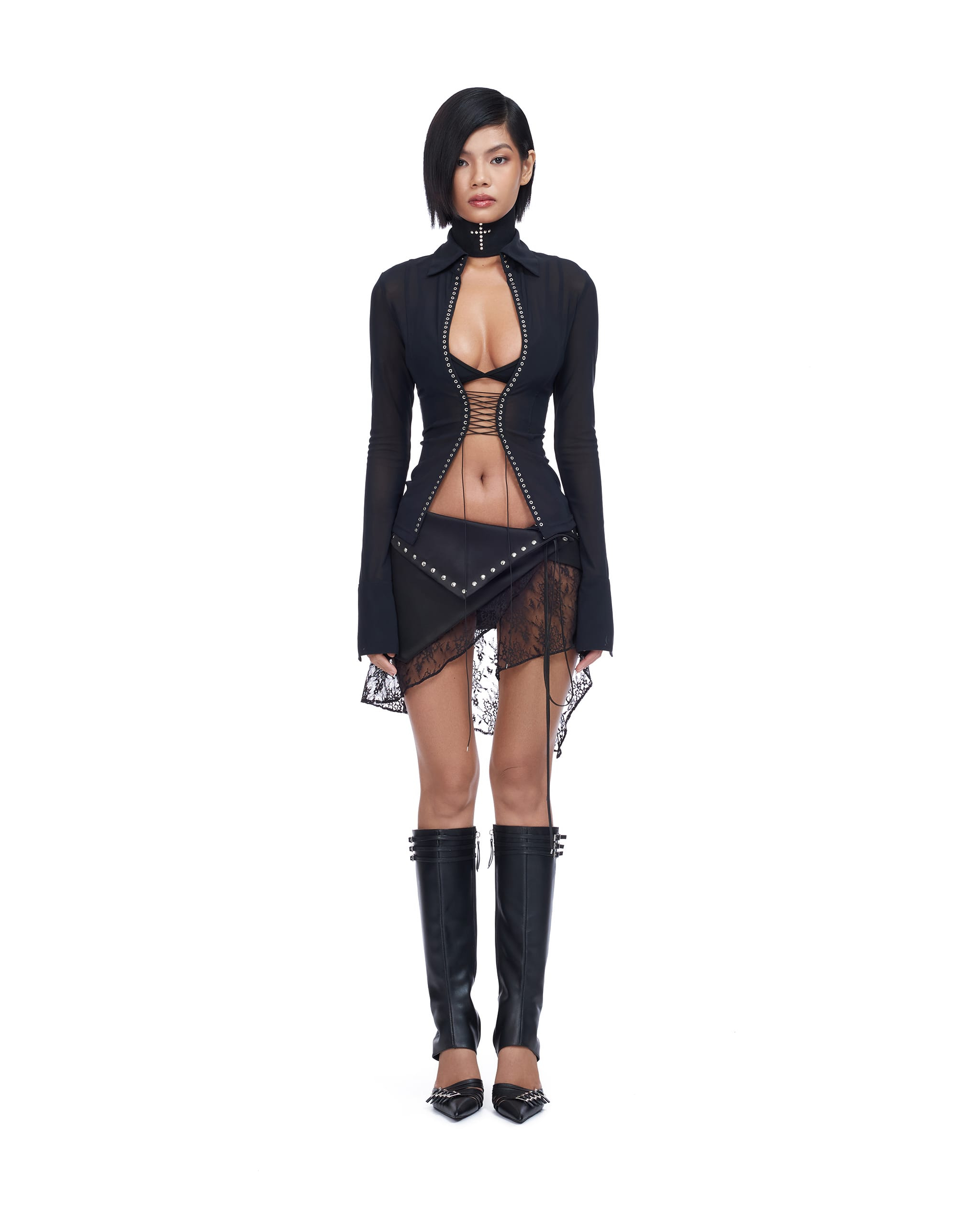 SHEER LACE-UP FRONT TOP