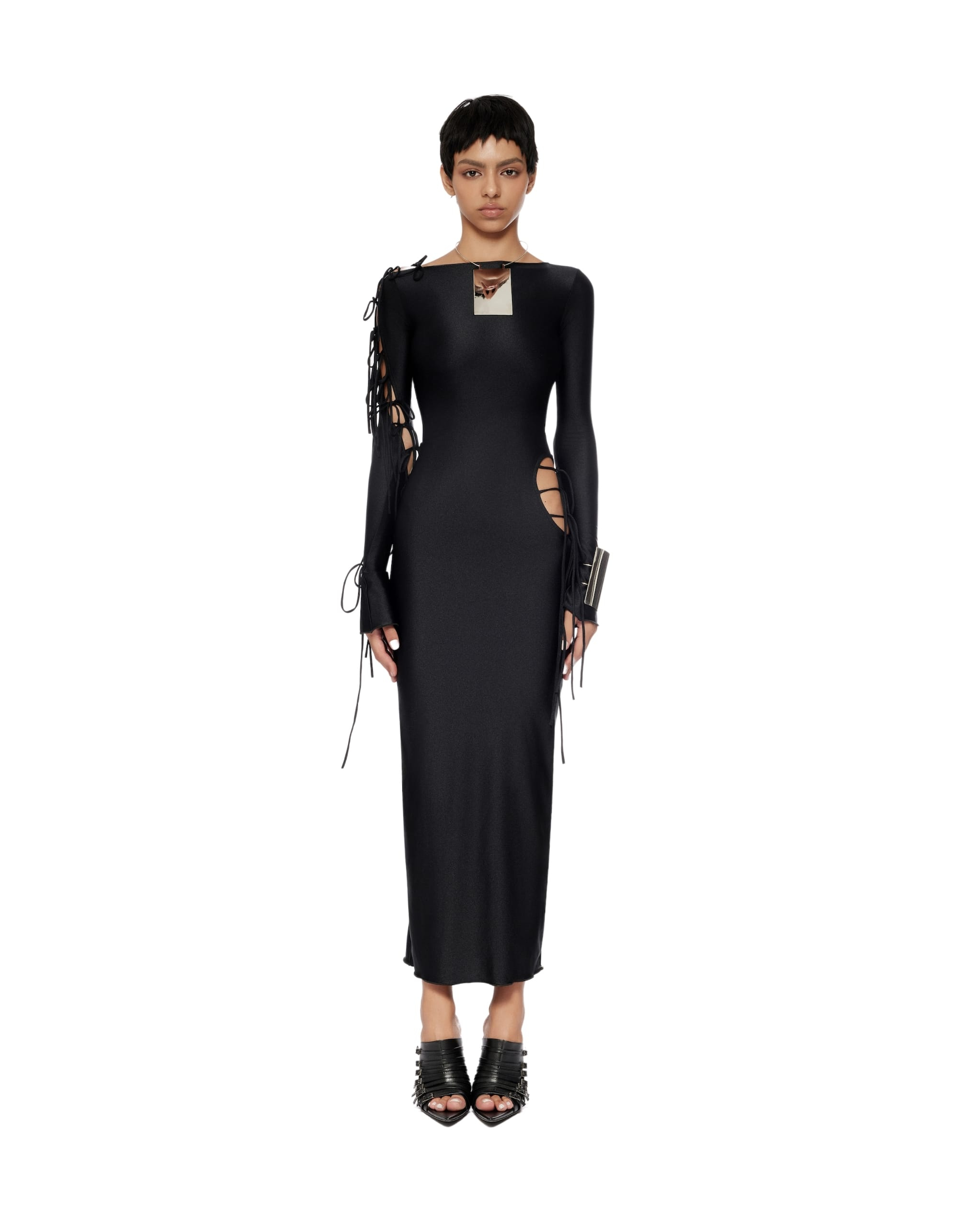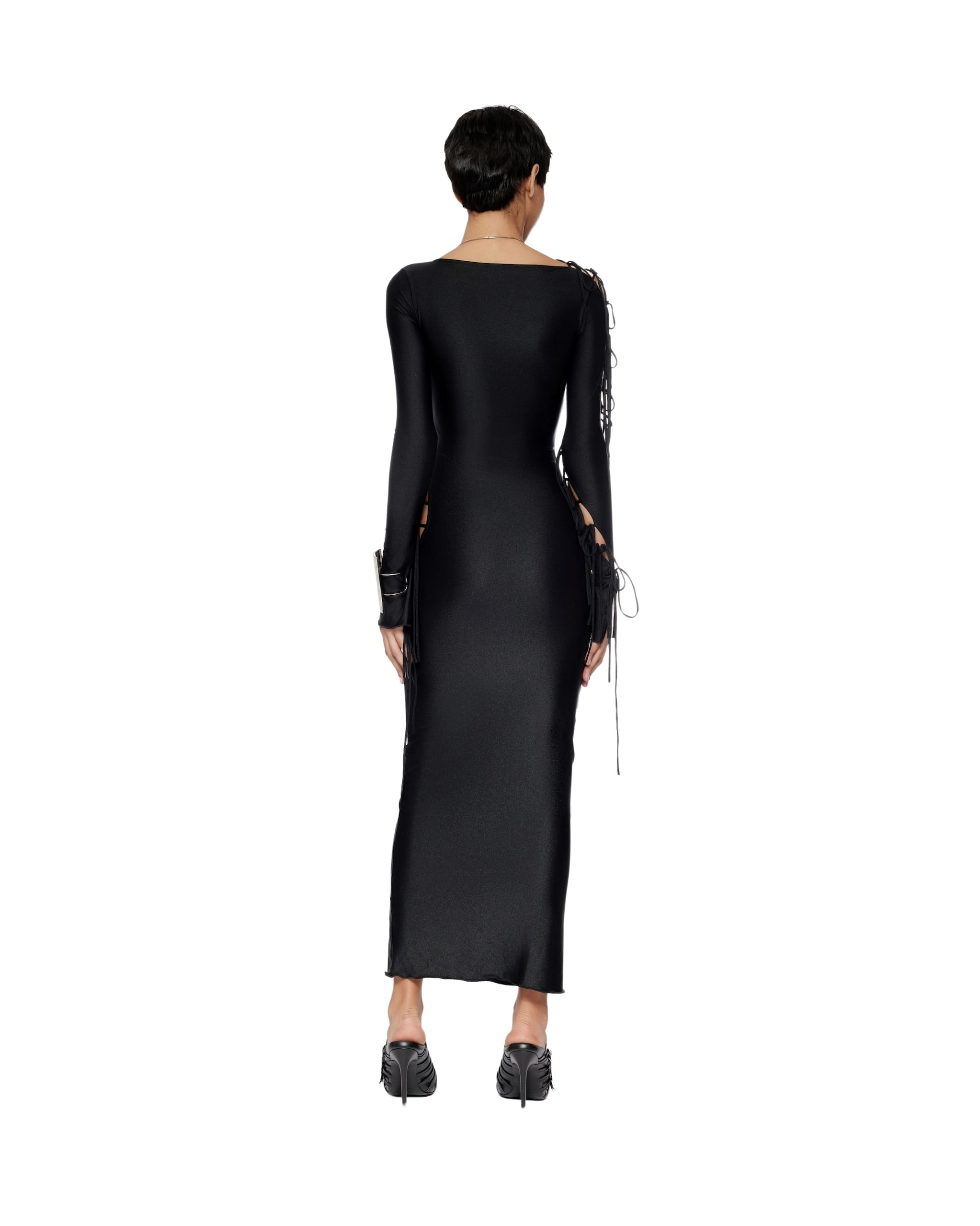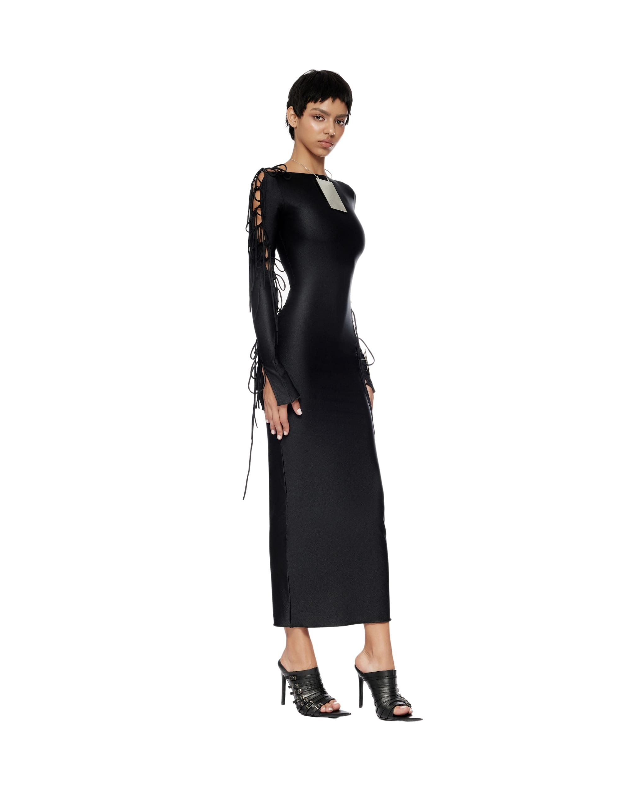 The model is 5ft7″ tall and wearing size XS.
