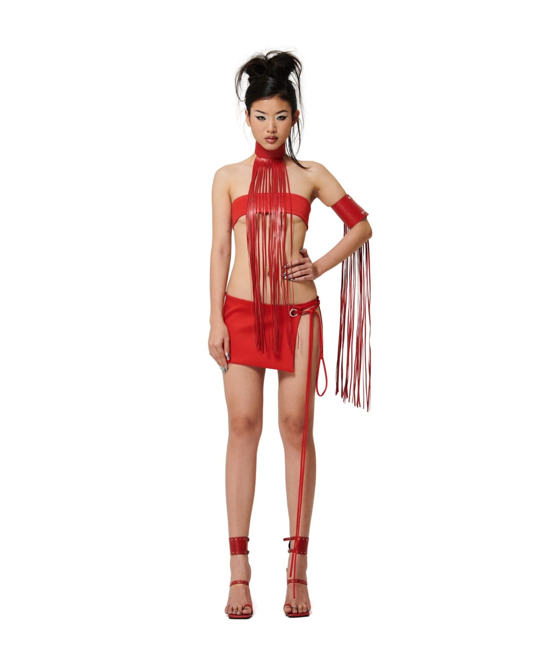 Genuine leather choker-style necklace with adjustable metal pin-backed button