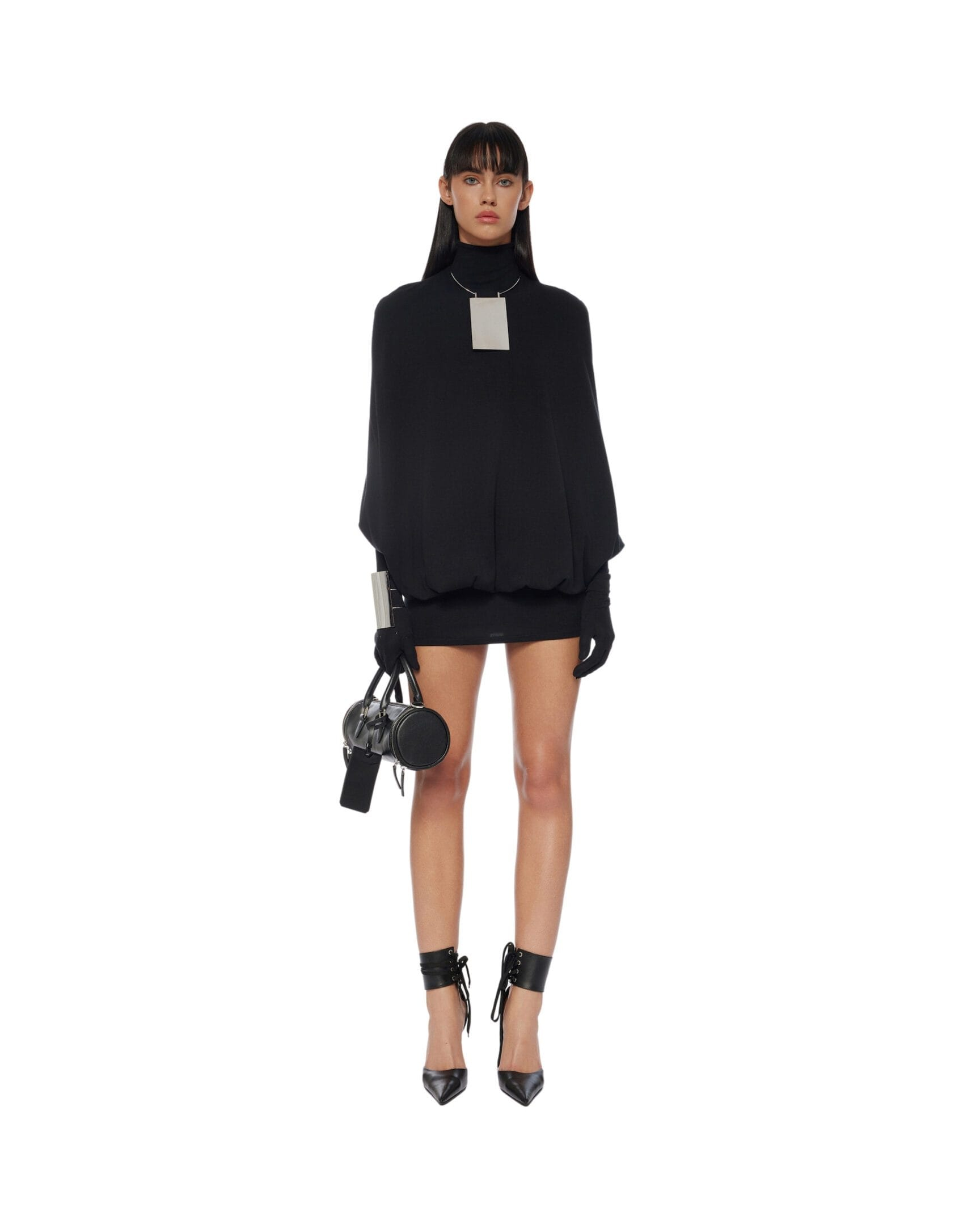 Stretch bamboo blend Bat wings gloves mini dress