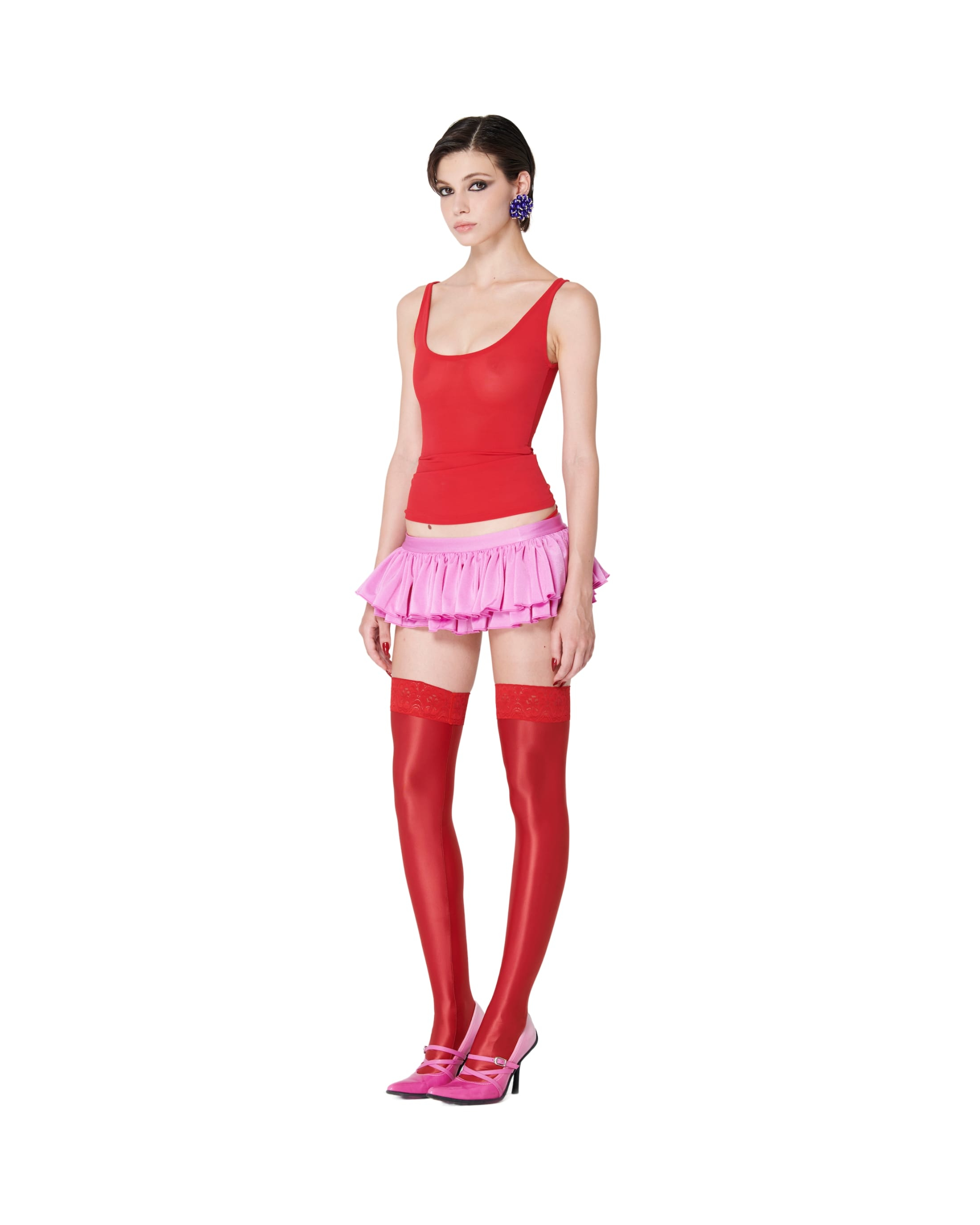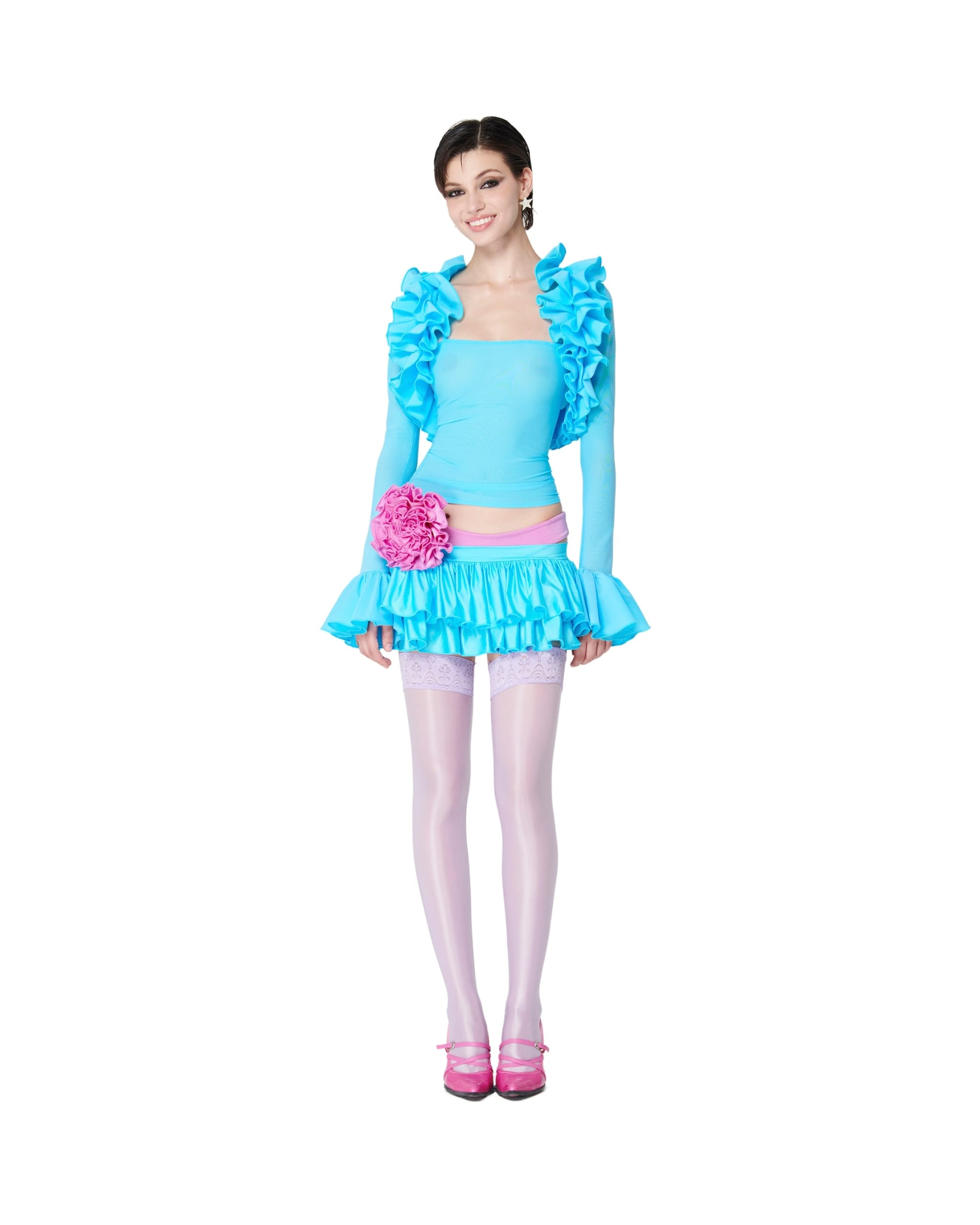 Double-layered ruffle mini skirt