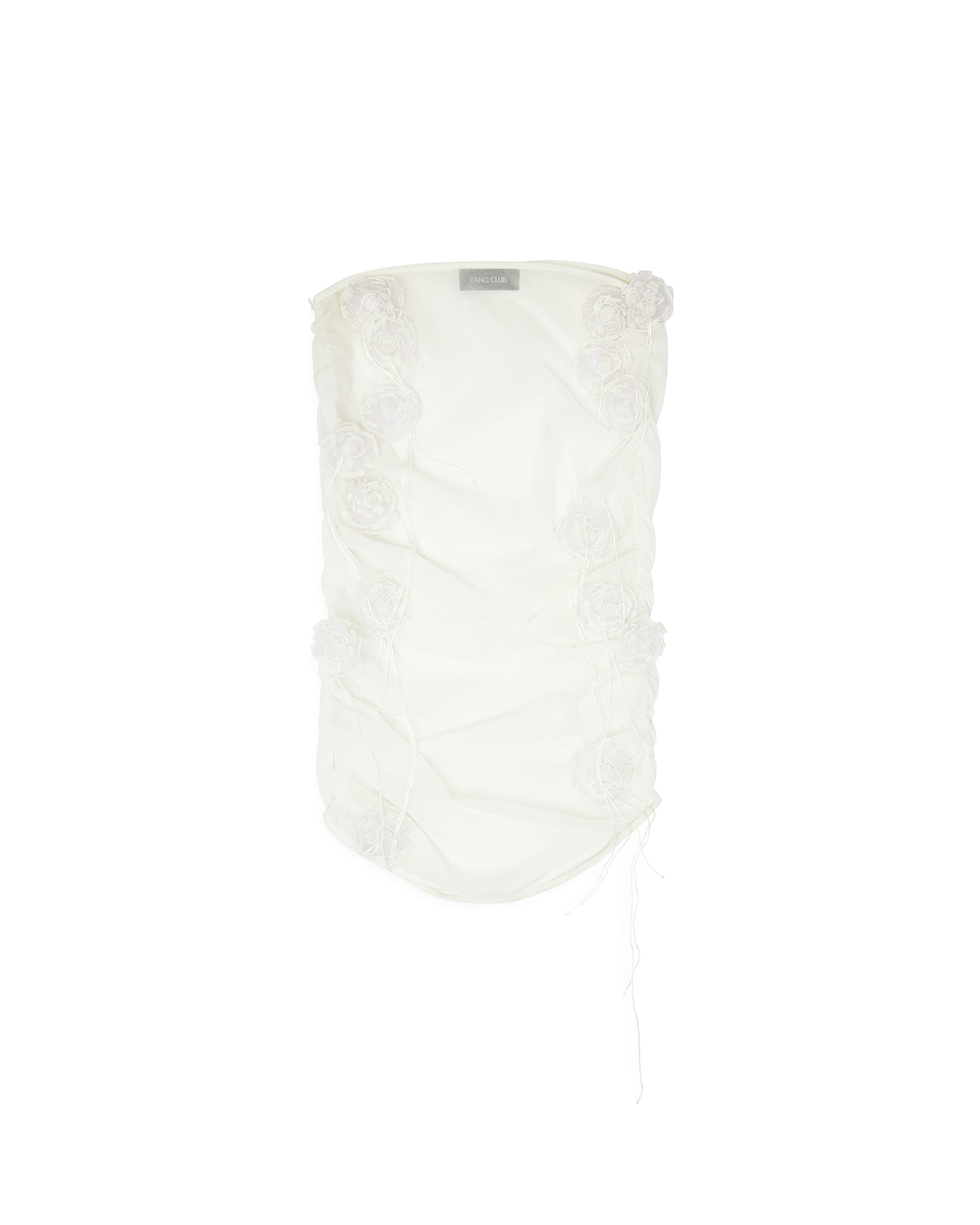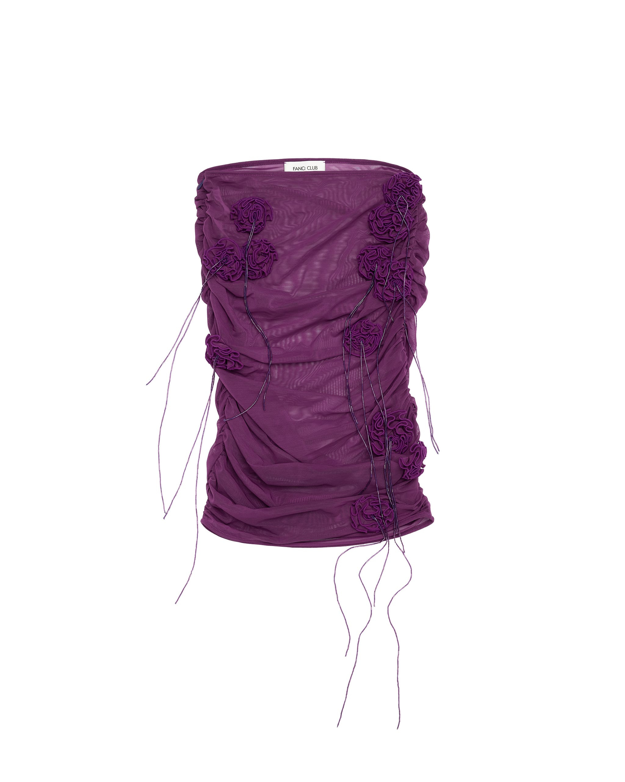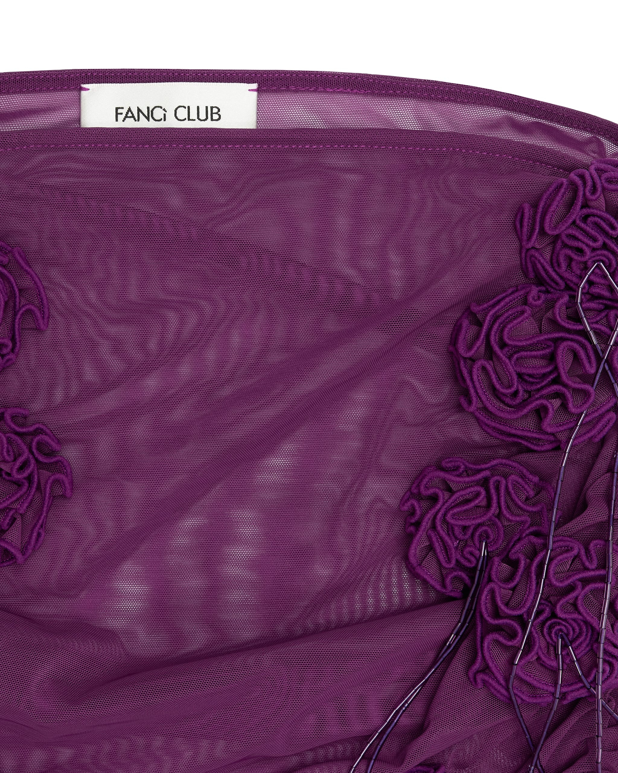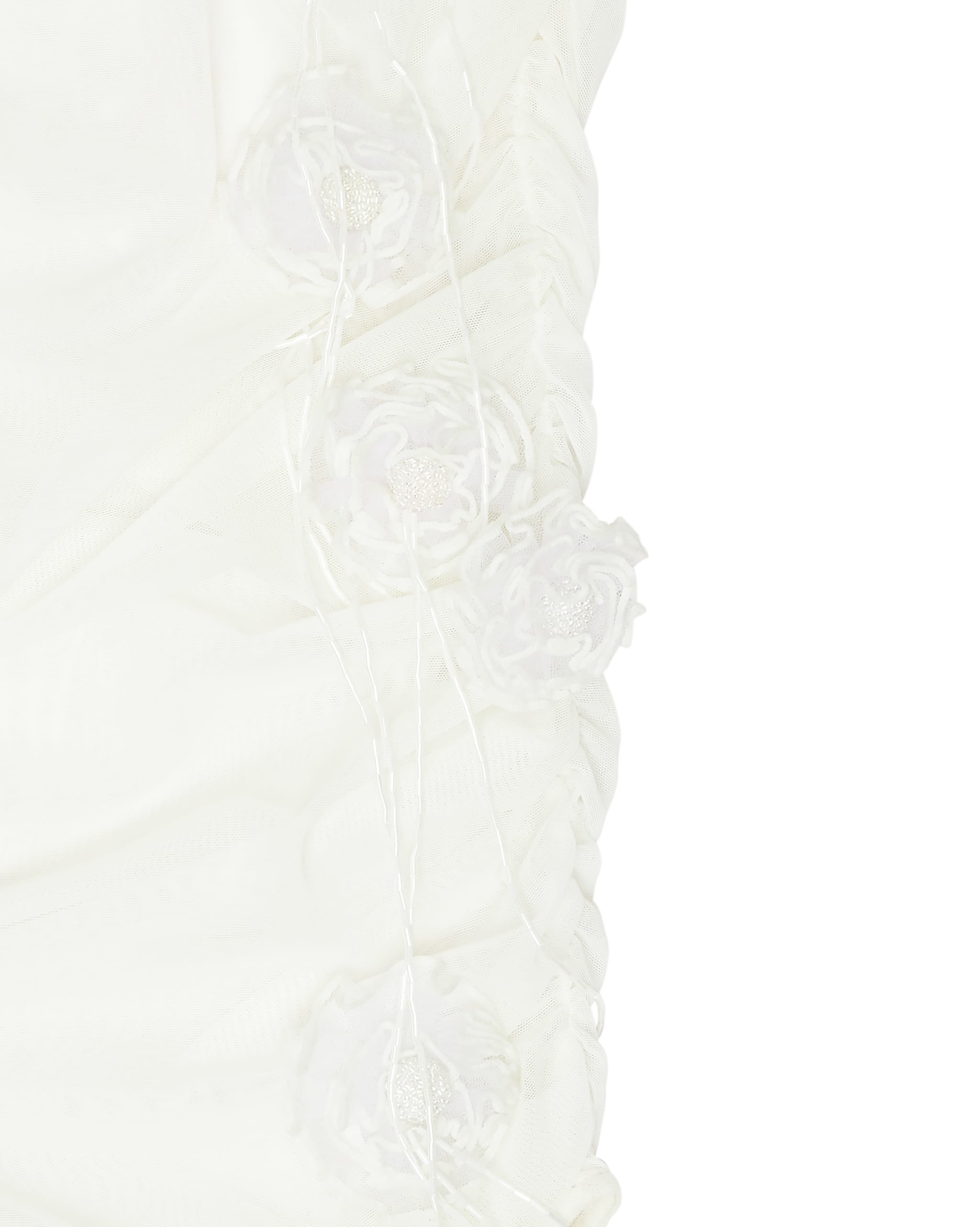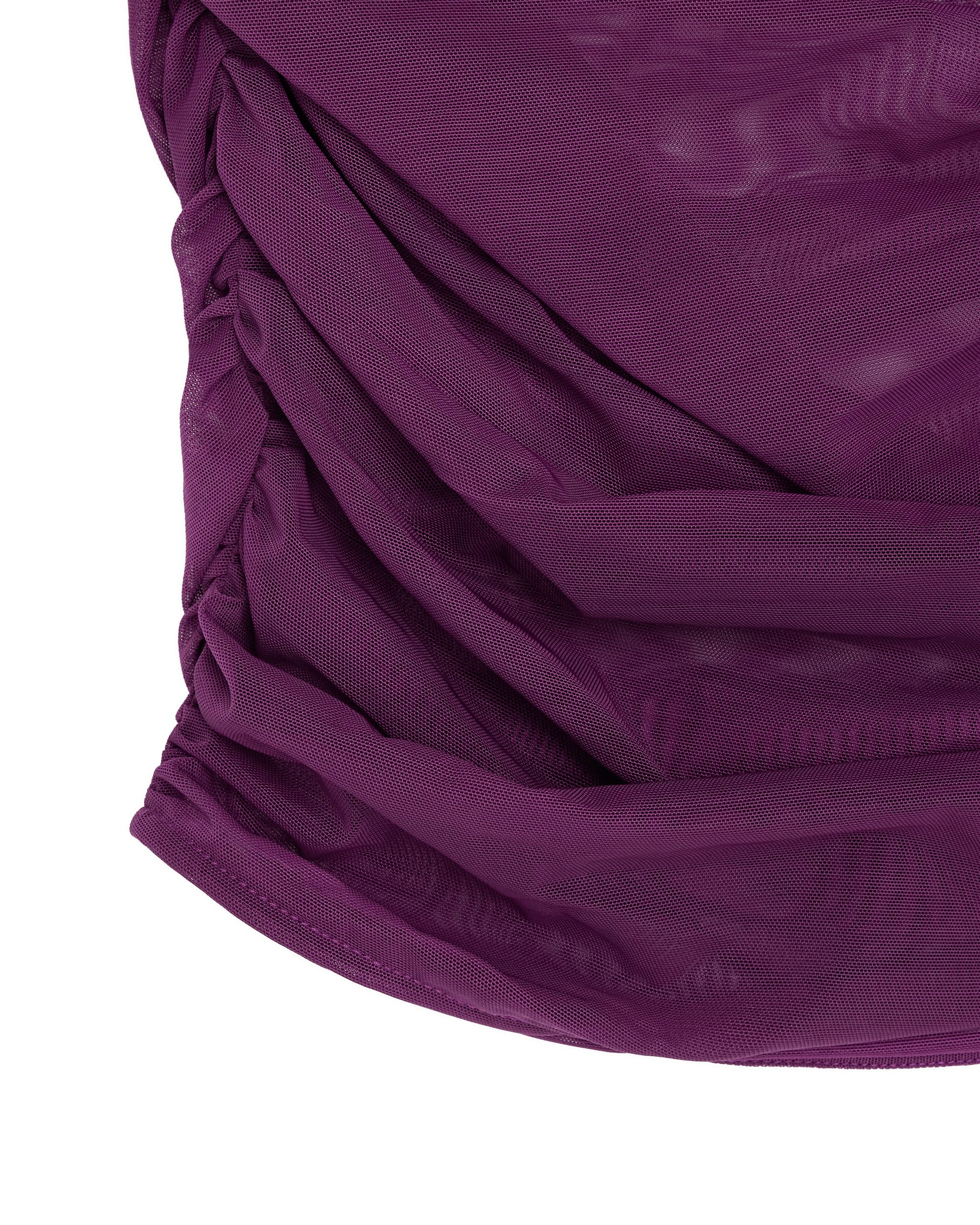 Semi-sheer stretch nylon mesh ruched midi skirt
