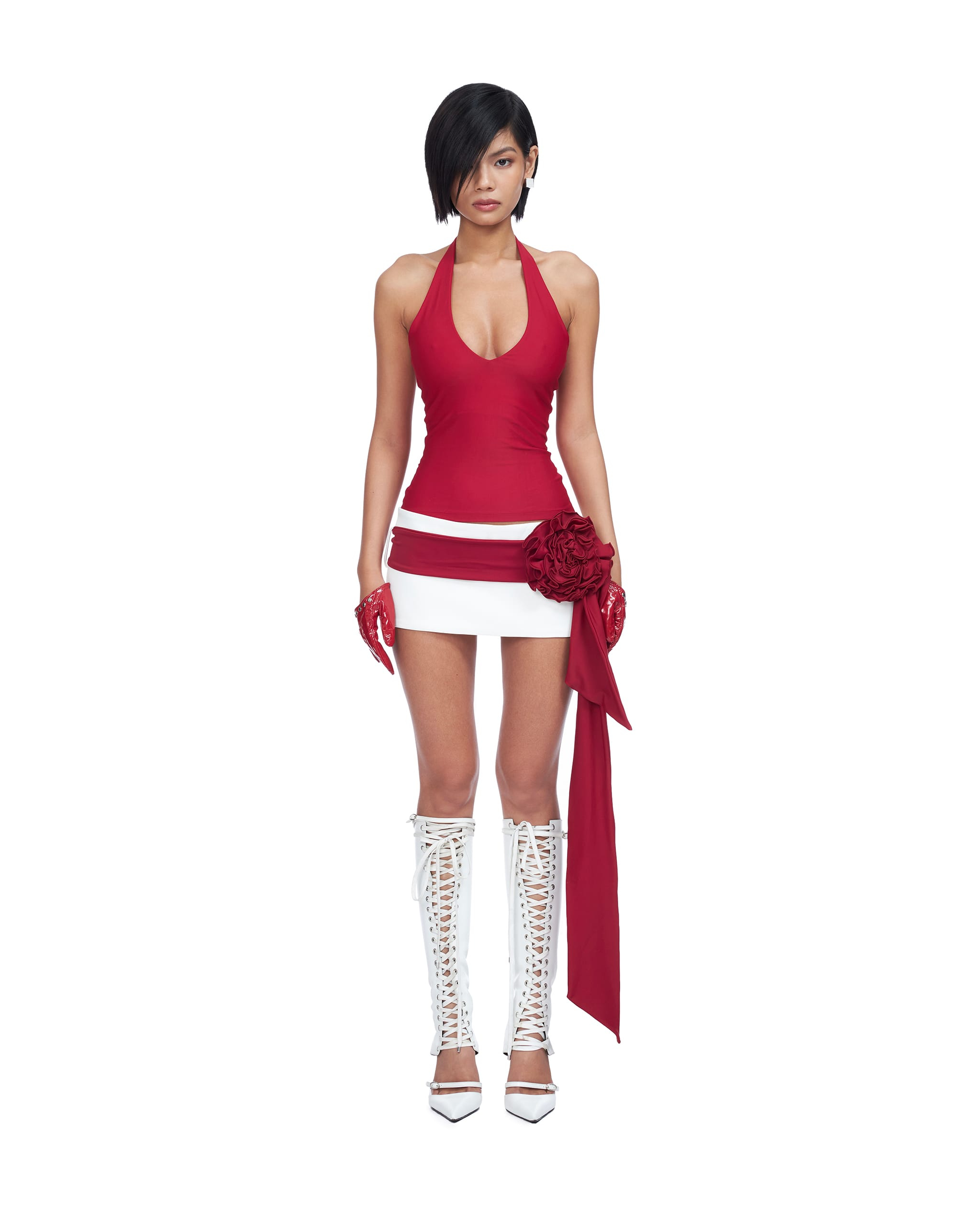 Mini skirt with rosette belt
