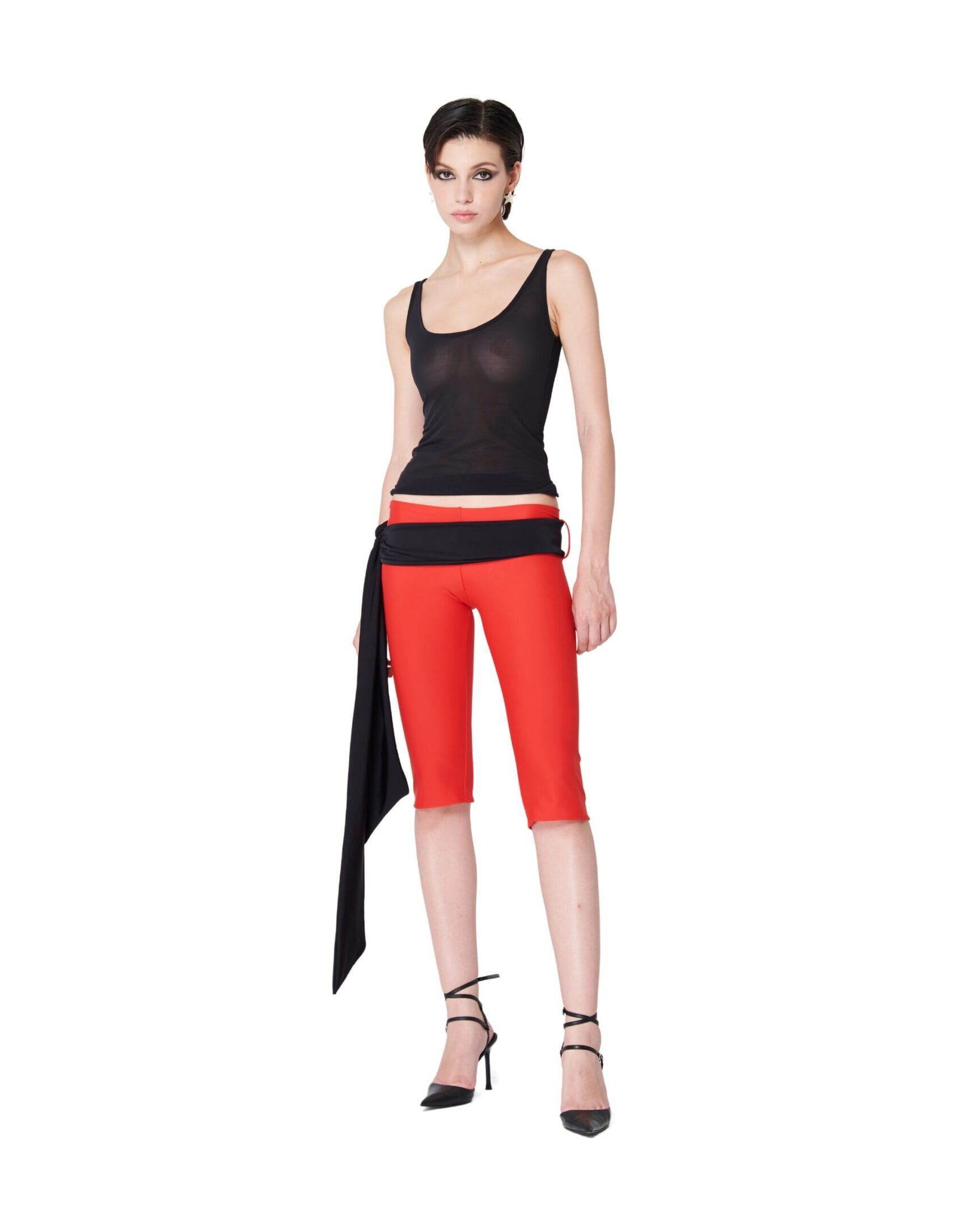 Capri pants with ribbon belt