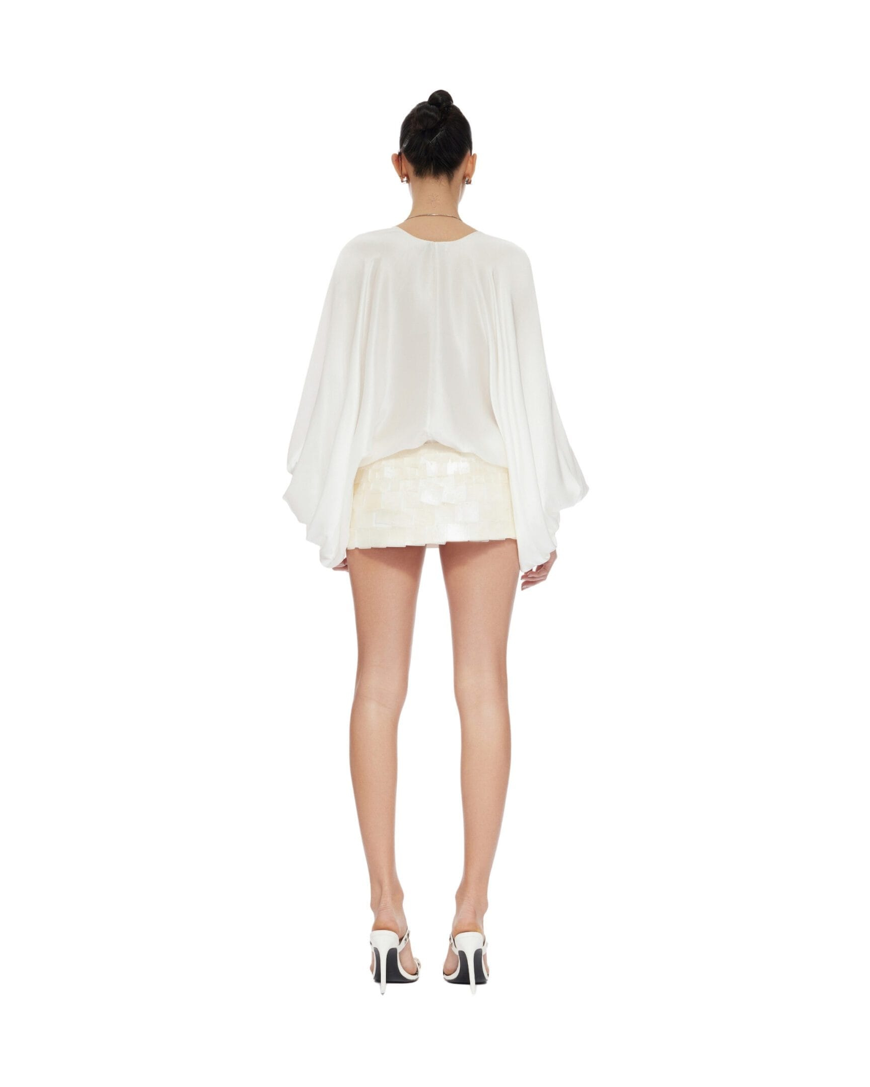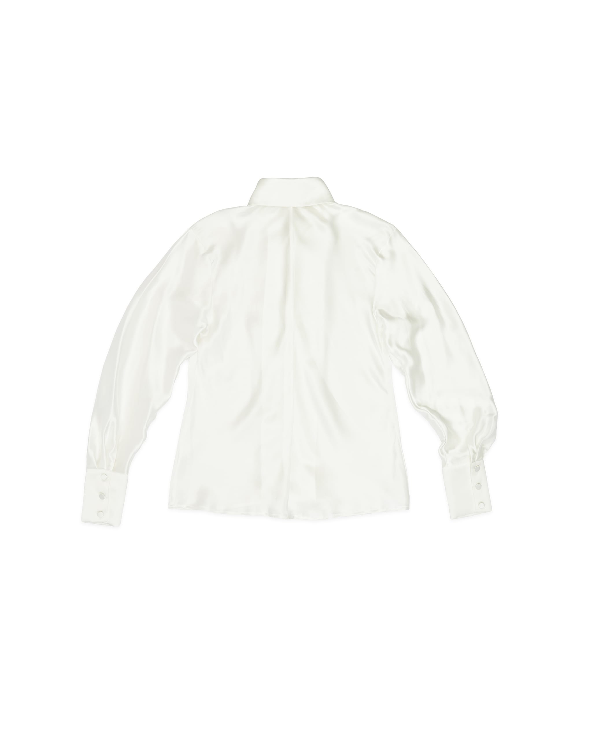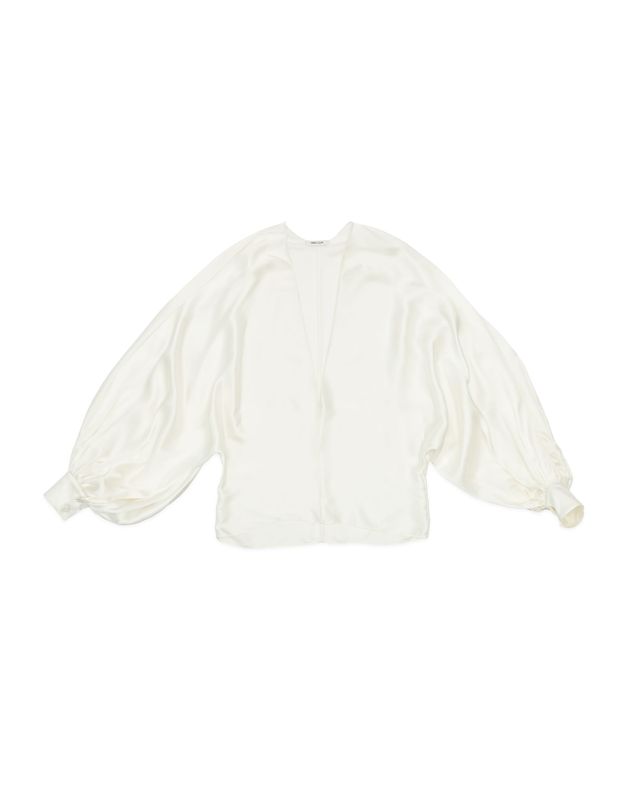 Charmeuse silk V-neck bat wings shirt Rolled hem line Three-button square cuff Unlined