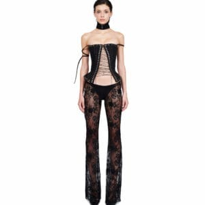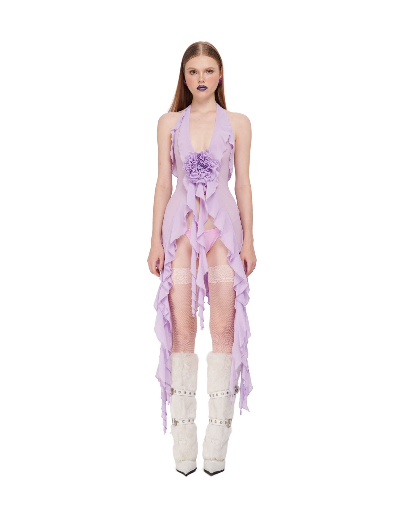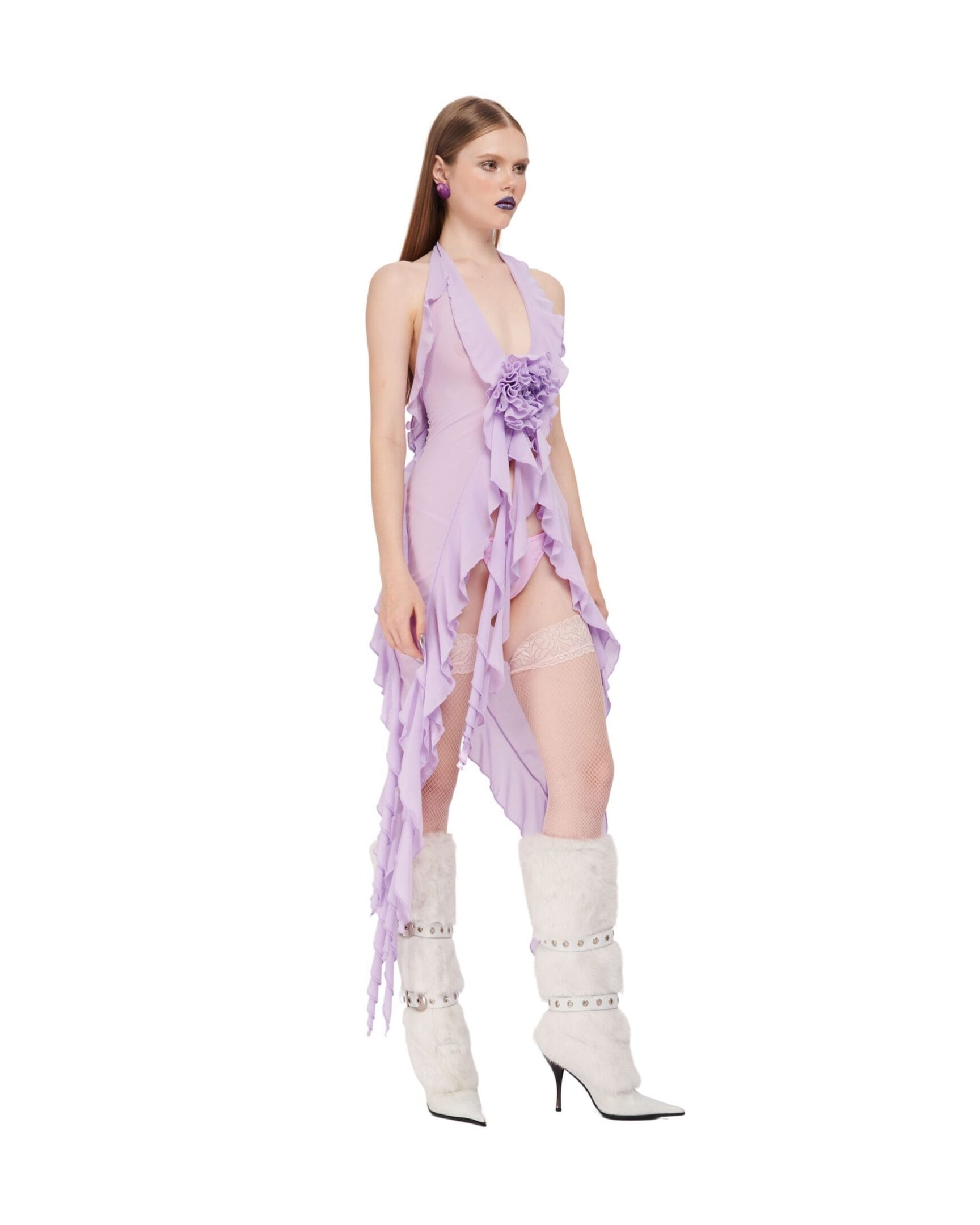 Spandex Mesh ruffle top with low cut chest.