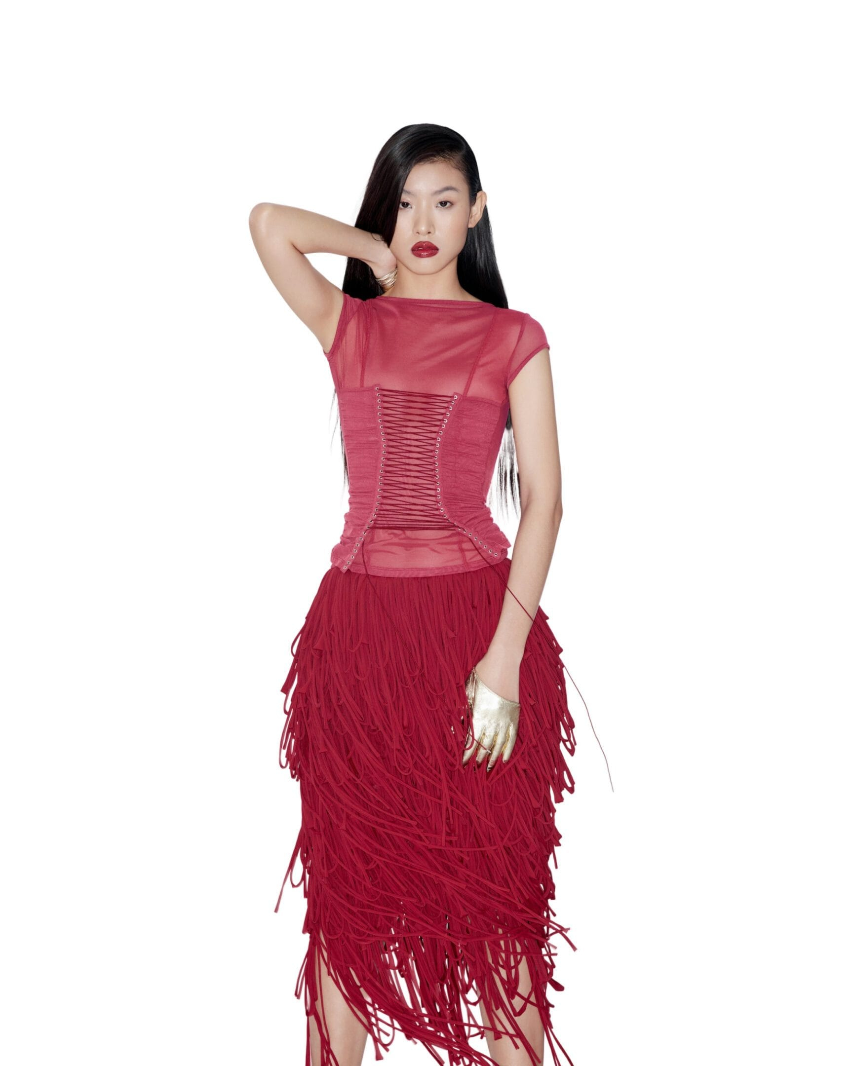 Lace-up fastening at the front